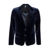 Dior navy blue velvet blazer in 100% cotton. Features a classic lapel collar, two-button closure, and flap pockets.