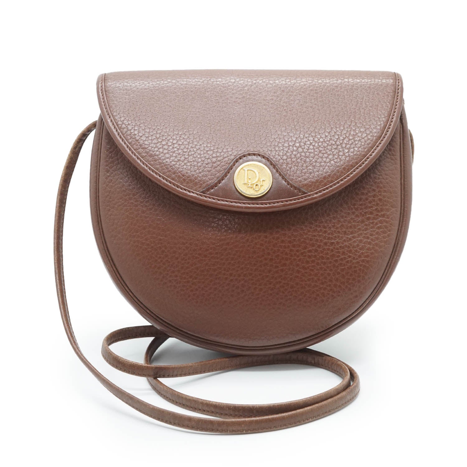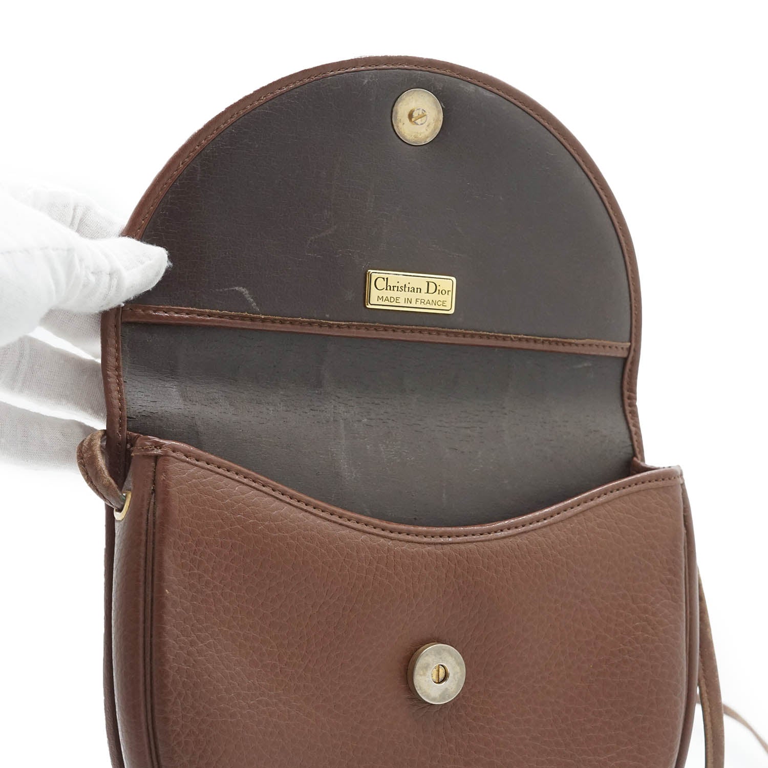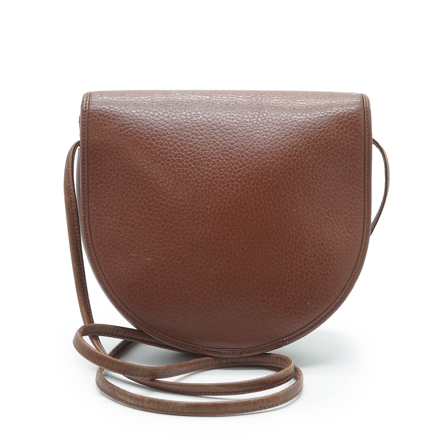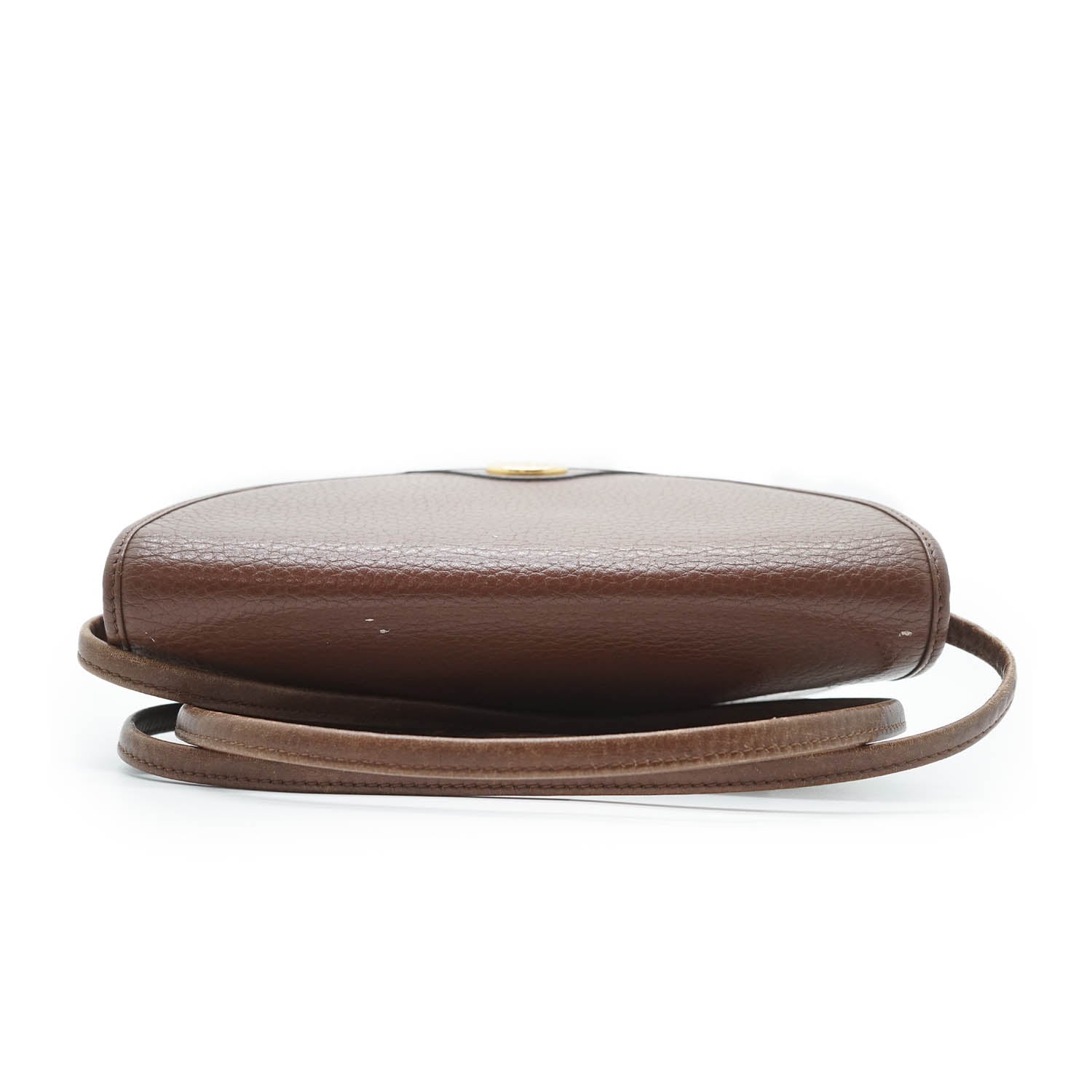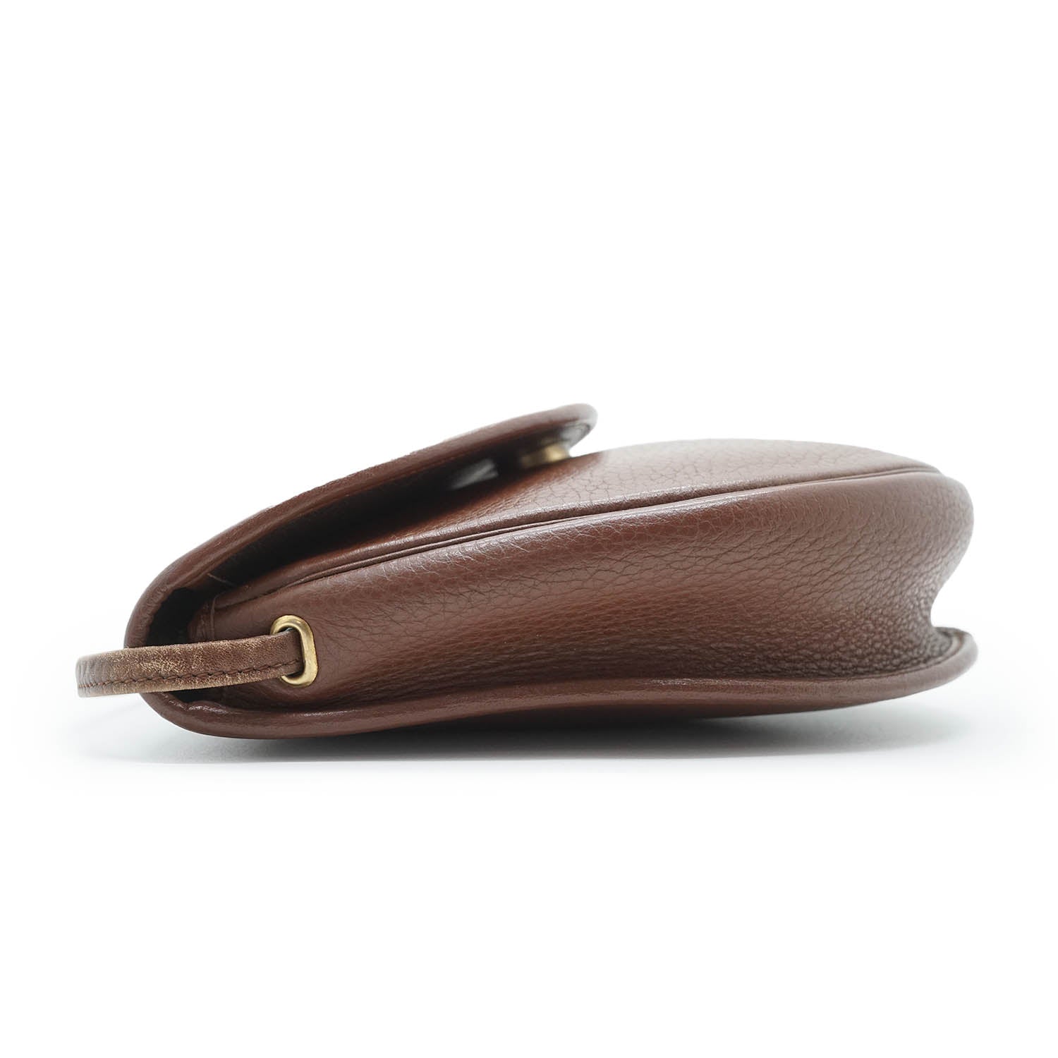 Vintage Rounded Flap Crossbody Bag Brown LeatherDepth: 5cmHeight: 19cmWidth: 20cmShoulder Drop: 57cmOutside Rank: BCInside Rank: BStain: Some black spots on the front logo plate, some black pen marks on the backDiscoloration: Hardware tarnish, overall leather discoloration on the strapScratch: Some scratches on the back and at the top, scratches throughout the insidePeeling: Minor leather cracking on the inside