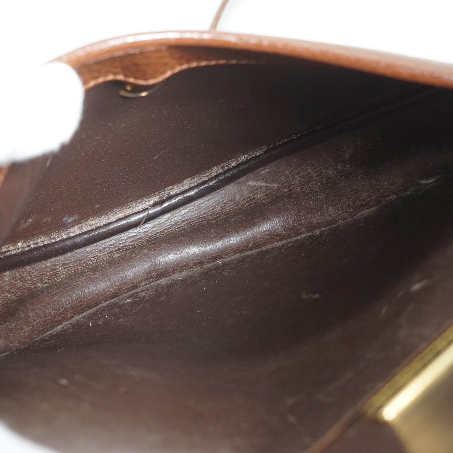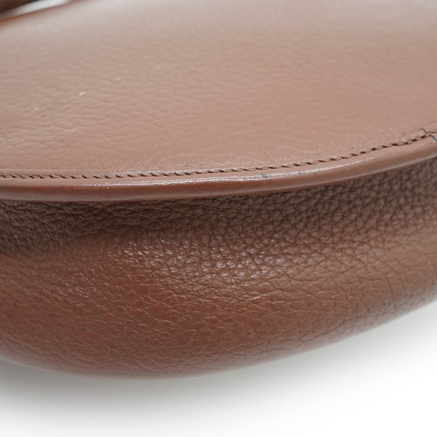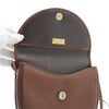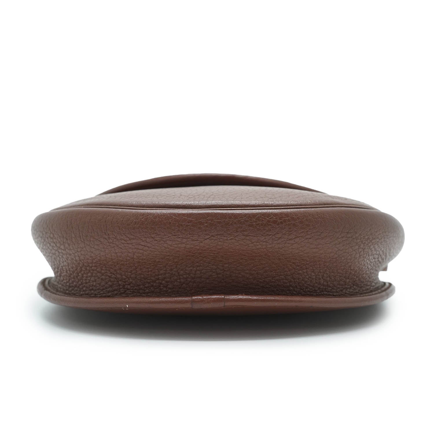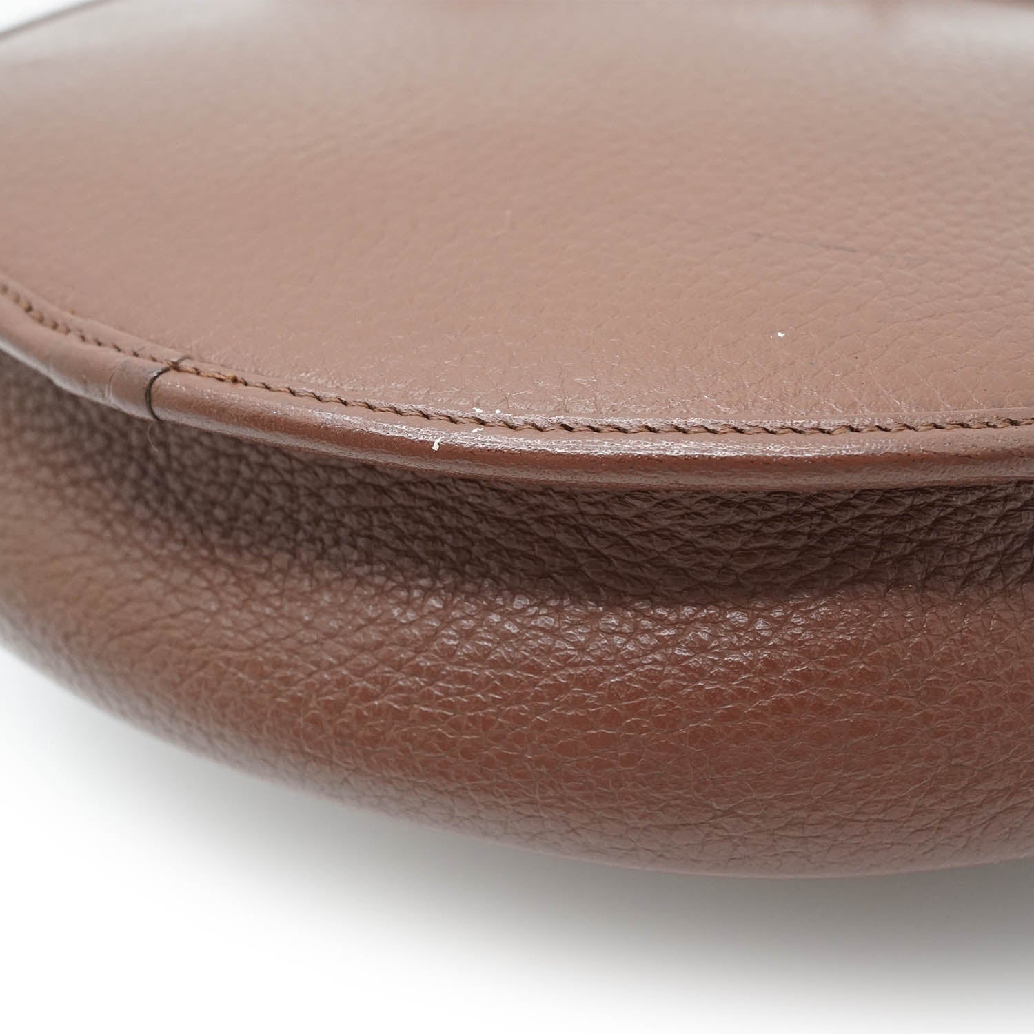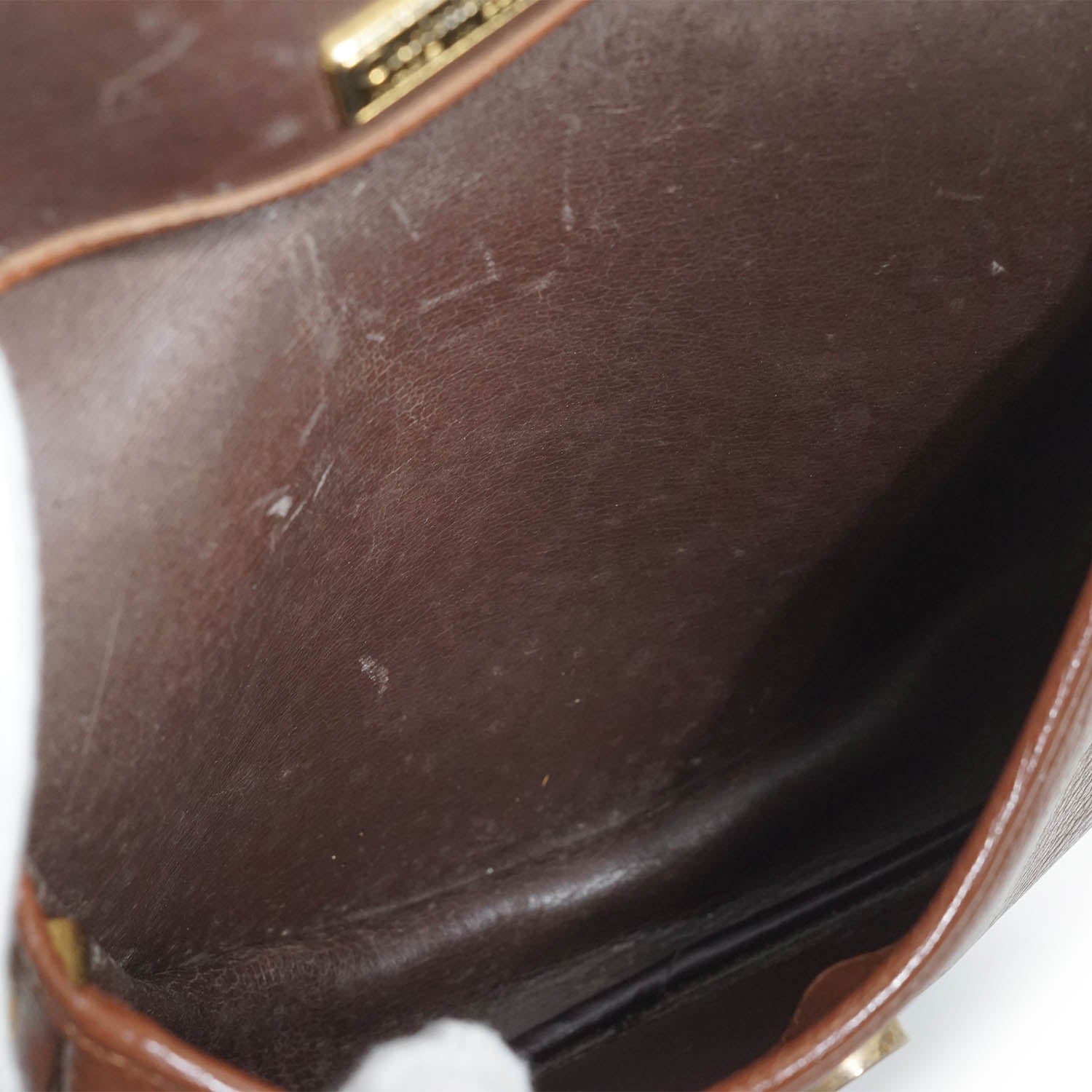 Vintage Rounded Flap Crossbody Bag Brown LeatherDepth: 5cmHeight: 19cmWidth: 20cmShoulder Drop: 57cmOutside Rank: BCInside Rank: BStain: Some black spots on the front logo plate, some black pen marks on the backDiscoloration: Hardware tarnish, overall leather discoloration on the strapScratch: Some scratches on the back and at the top, scratches throughout the insidePeeling: Minor leather cracking on the inside