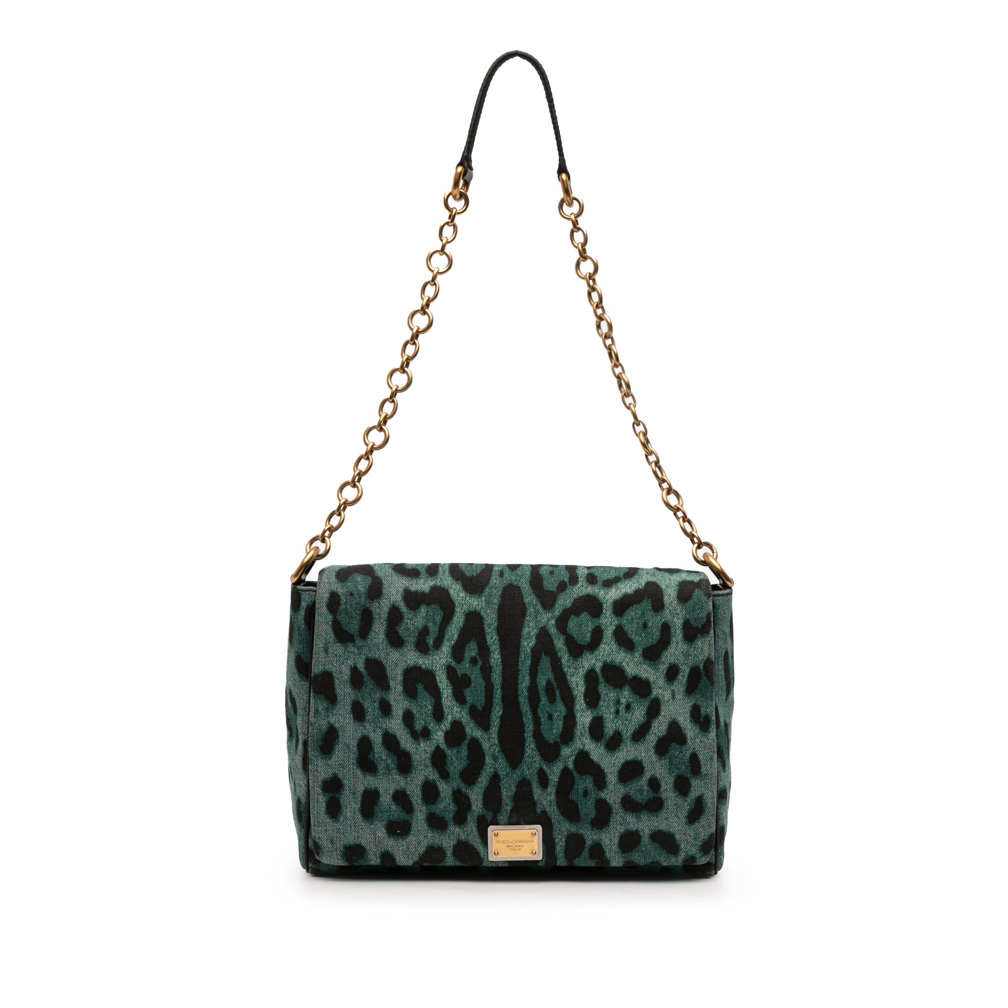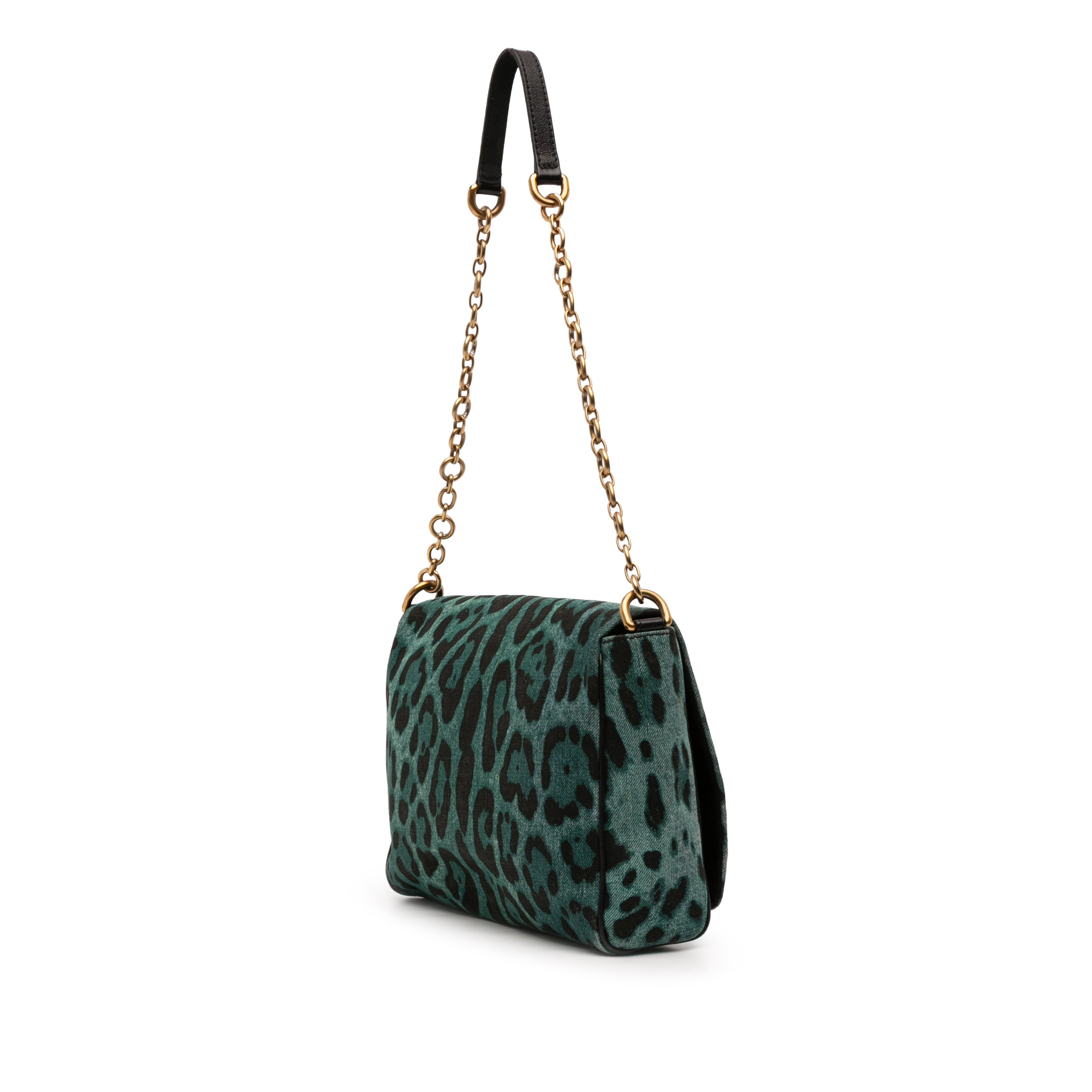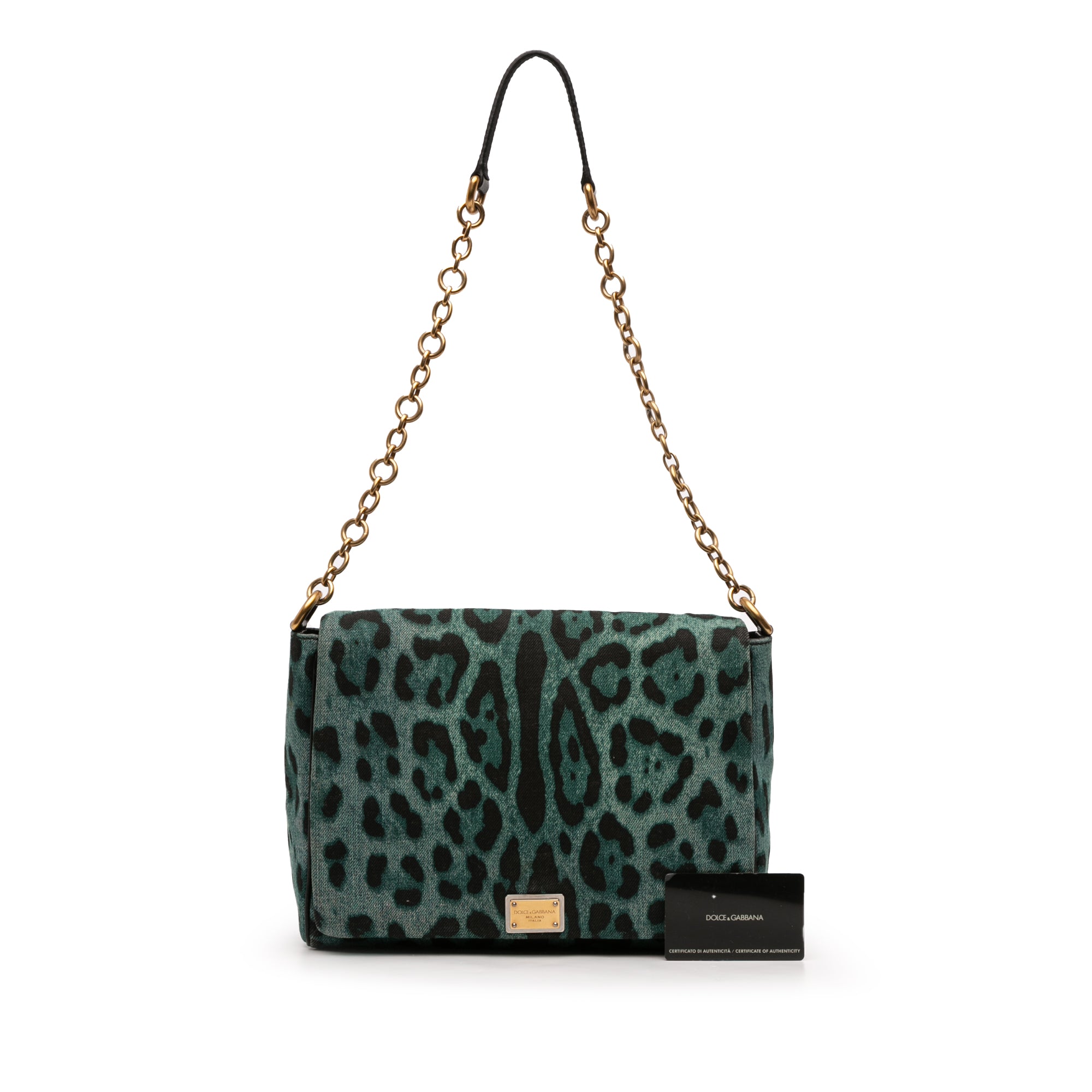 Dolce & Gabbana Leopard Printed Denim Flap Crossbody