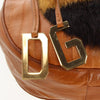 Dolce & Gabbana camel-colored leather 2000s shoulder bag with front and rear beige, black and turquoise rabbit fur inserts. Upper flap with decorative strap, buckle and logoed gold-tone metal ring, and magnetic stud closure. One chain shoulder strap and one removable leather shoulder strap with carabiners. Pendant with gold-tone metal brand initials. One outer pocket and and one internal zip pocket.