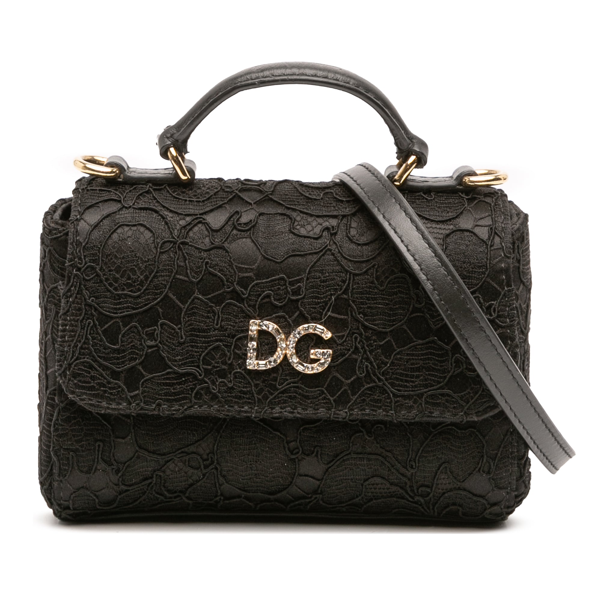 Dolce & Gabbana Silk and Lace Crystal Embellished DG Flap Satchel