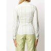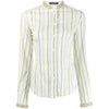 Dolce & Gabbana beige cotton shirt with acid green, blu and white stripes. Mandarin collar and frontal buttons closure. Collar and cuffs embellished with embroidery and beads.