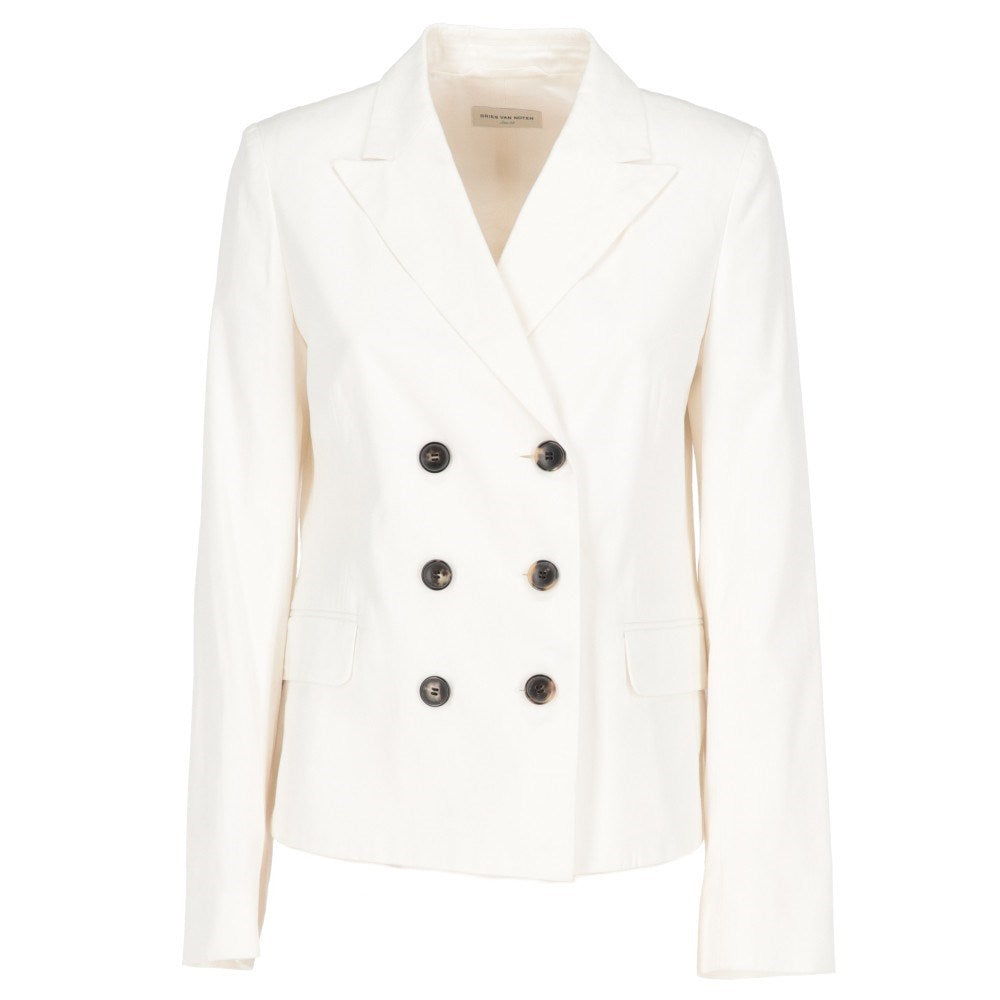 Dries Van Noten 2010s white double-breasted jacket. Lapel collar, two front welt pockets with flap, front button fastening.