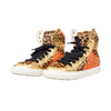 Dsquared2 High Top Sneakers from the 2010s, features leopard printed calf hair, golden metallic leather details, black laces, and golden studs for a bold look.