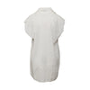 Silk shirt-style top with open lapel collar and two-button closure. Loose fit with raw-edged sleeves. Can be styled as a relaxed top or a chic mini dress.