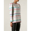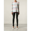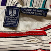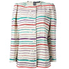 Ungaro white viscose 80s jacket with multicolored stripes, padded shoulders, round collar and frontal white buttons closure. Padded lining.
