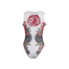 Gianfranco Ferré '90s white bodysuit with tropical prints, embellished with black and white embroidery. Long sleeves with hidden side zip fastening.