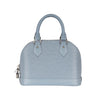 Made with the brand's signature epi leather, the Louis Vuitton Epi Alma BB in pastel blue comes with a stylish long removable giving it a distinct vibe and making it easy to carry it around or across the shoulder. The main chain compartment includes a small pocket that provides access to store small essentials.