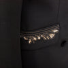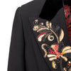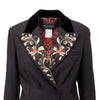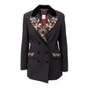 Etro wool-blend blazer with velvet-trimmed, embroidered collar. Slightly fitted double-breasted cut, velvet buttons, embroidered pocket flaps. Lined in signature paisley.