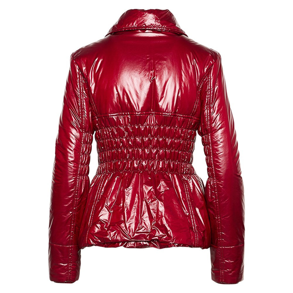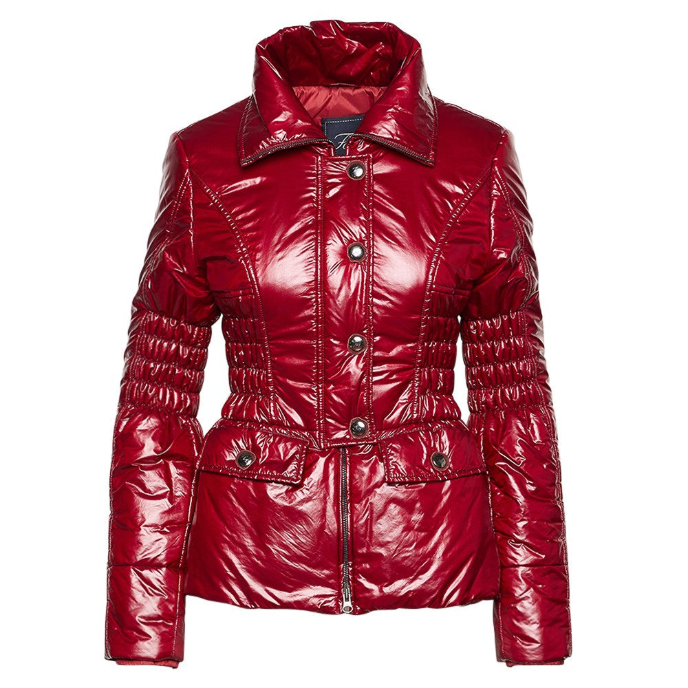 Fay shiny burgundy 2000s crop jacket. Raised collar, front zip fastening and upper closure with press studs. Elasticated fitted waist, pockets with flap and button, elasticated inserts on the sleeves and double elasticated cuffs. Slighlty padding and slim fit.