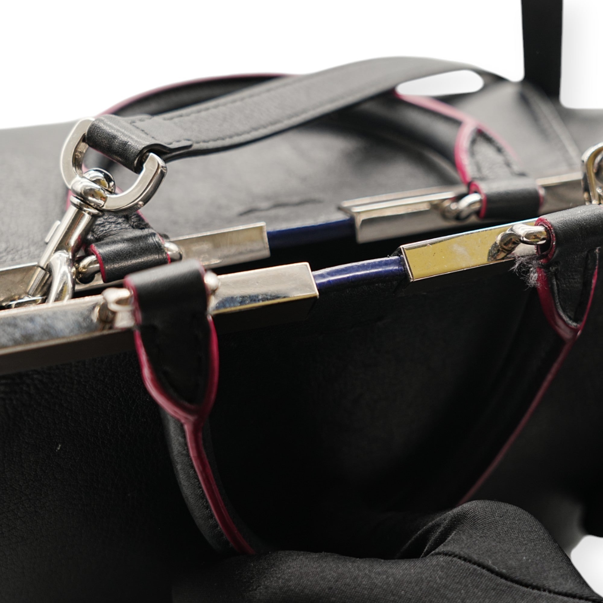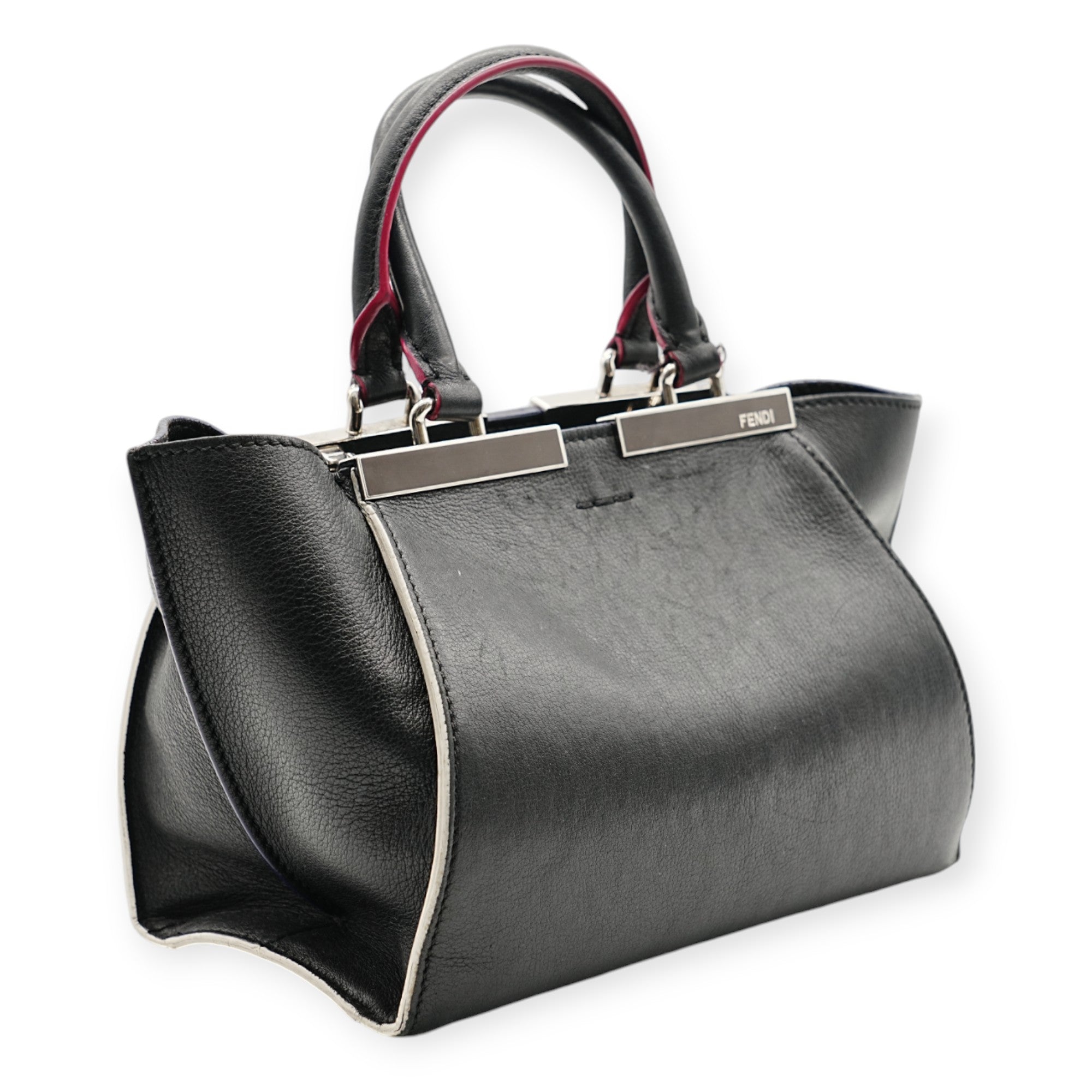 The Fendi 3Jours Leather Black Tote Bag boasts a structured silhouette crafted from premium black leather with a minimalist design and spacious interior.
