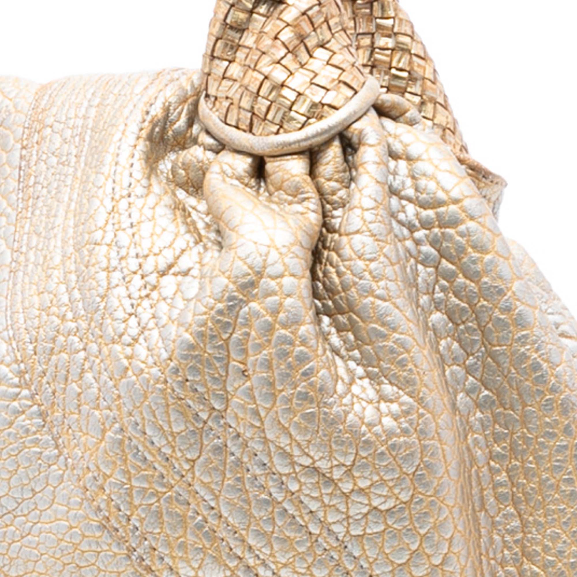 The Spy bag features a bimetal nappa leather body, woven rolled leather handles, and a flap closure. Retail Price: 2410.00