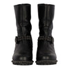 The chic Fendi Black Leather Joan Studded Biker Boots showcase black leather with sheen, complemented with the black and beige studs. The aesthetic is amplified by the studded belt through which the boots can be tightened, along with the zipper on the back.