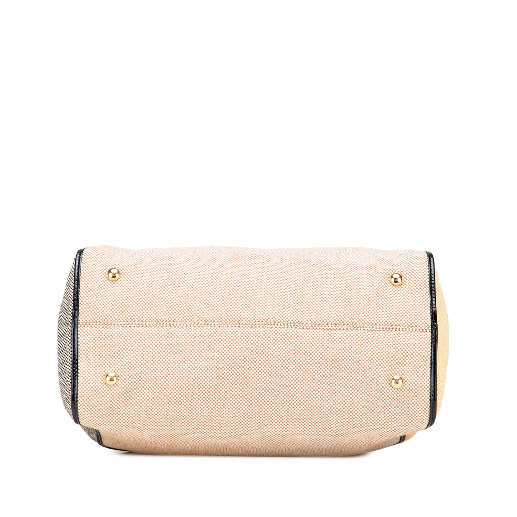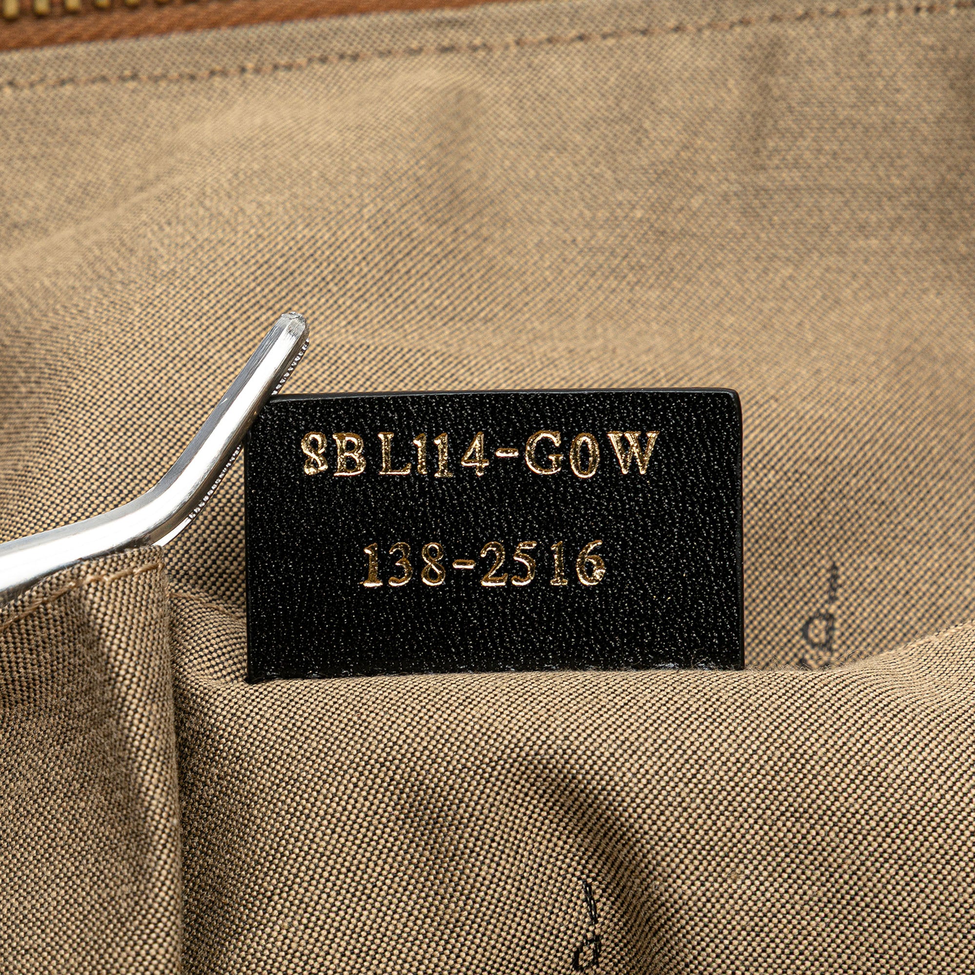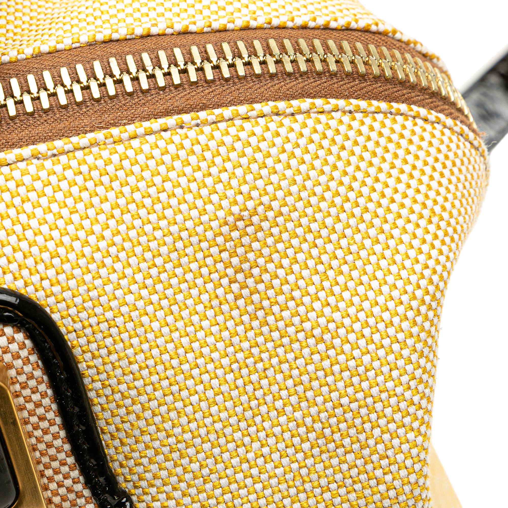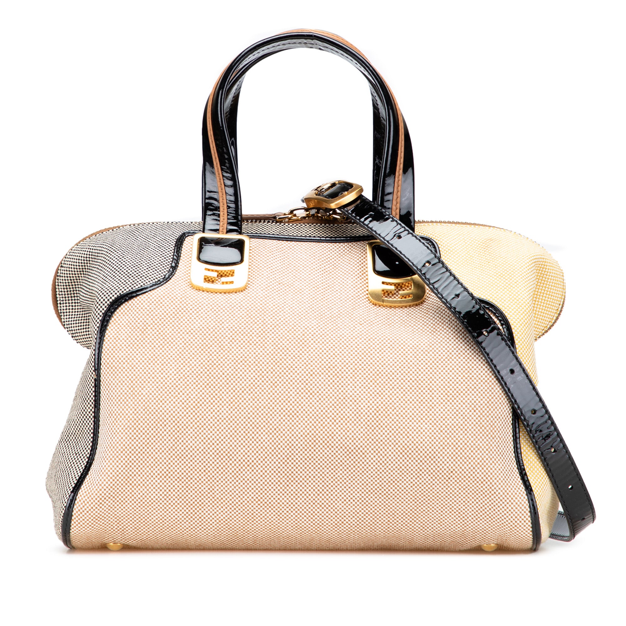 The Chameleon features a tricolor canvas body with leather trim, flat leather handles, a detachable flat leather strap, a top zip closure, an interior zip compartment, and interior slip pockets. Inclusion: Dust bag. Retail Price: 1908.00