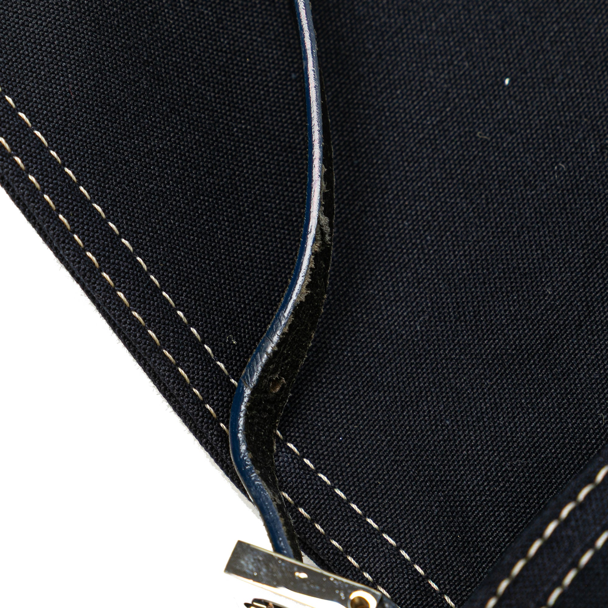 The baguette features a canvas body, a flat leather strap, a front flap with magnetic snap closure, and an interior zip pocket. Inclusion: Dust bag. Retail Price: 1911.00