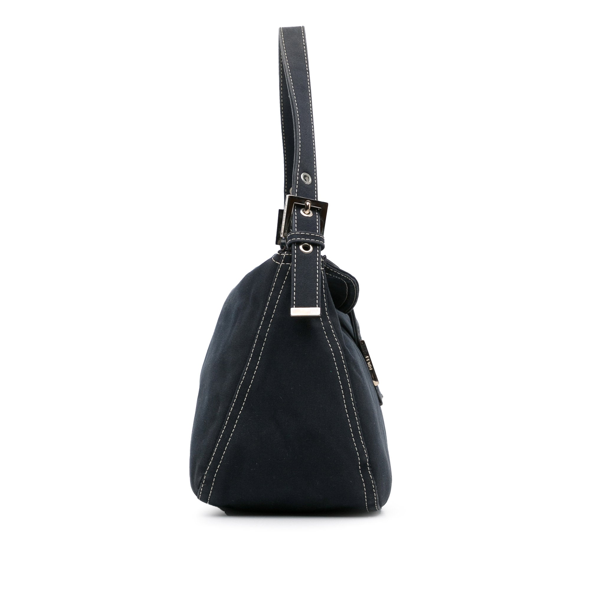 This shoulder features a canvas body, a flat adjustable leather shoulder strap, double flaps with magnetic snap closure, and an interior zip pocket. Retail Price: 1560.00