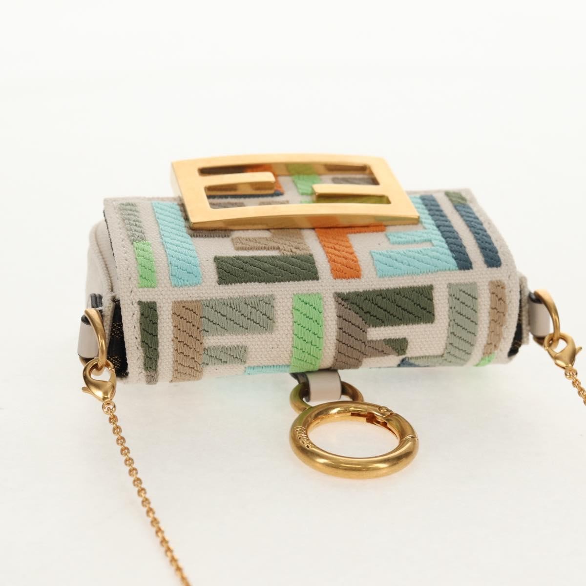 Fendi Chain Baguette Charm Bag Zucca Embroidered