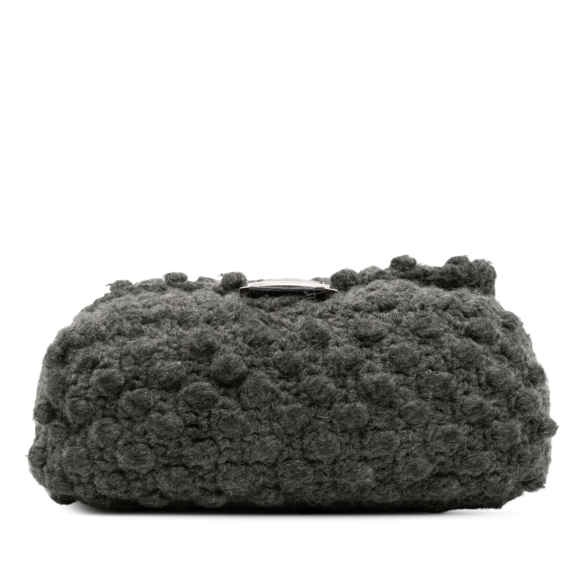 The Mamma Forever features a wool body, a flat leather strap, a flap with magnetic snap closure, and an interior zip pocket. Retail Price: 1190.00