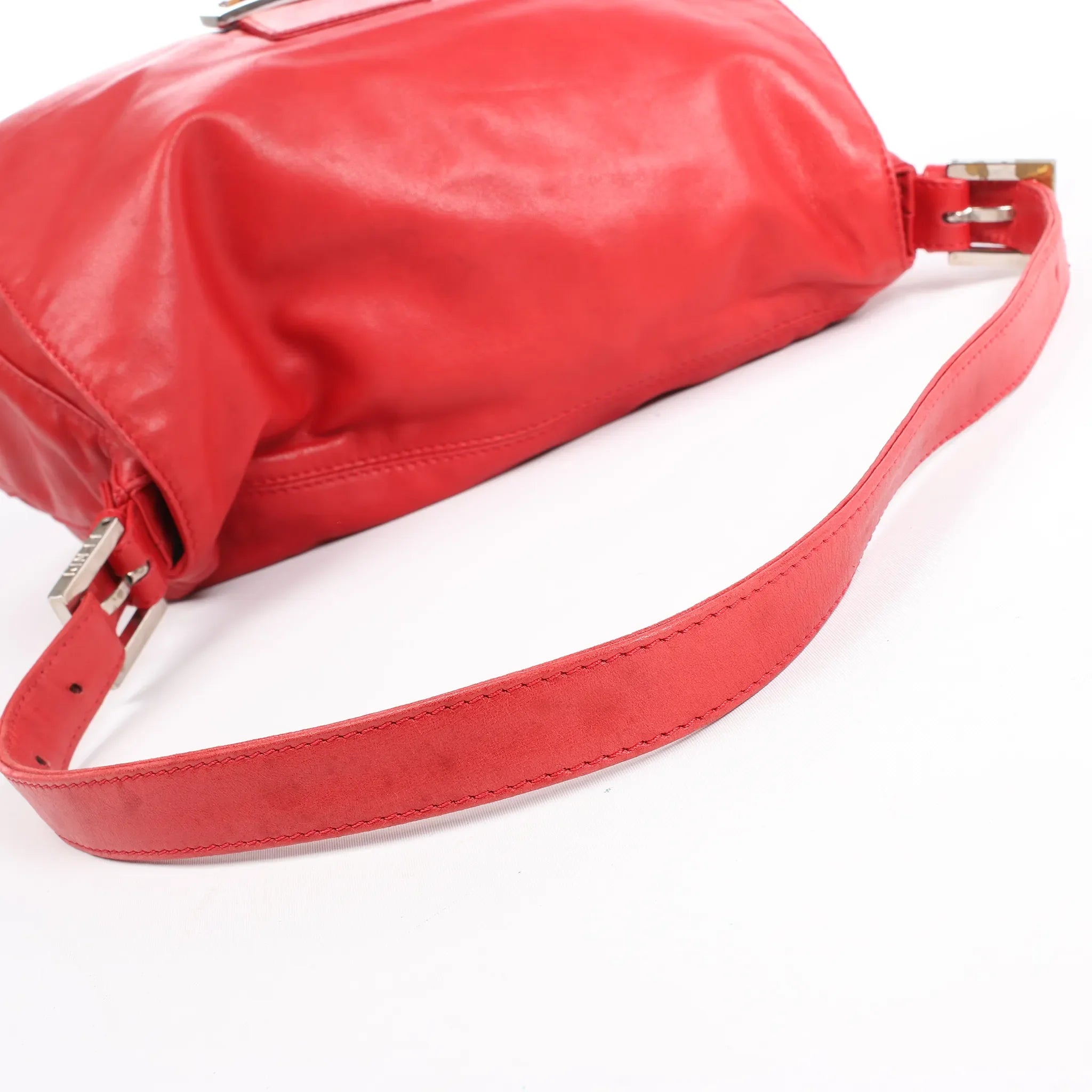 Fendi FENDI Mamma Baguette Leather Shoulder bag in Red 26325