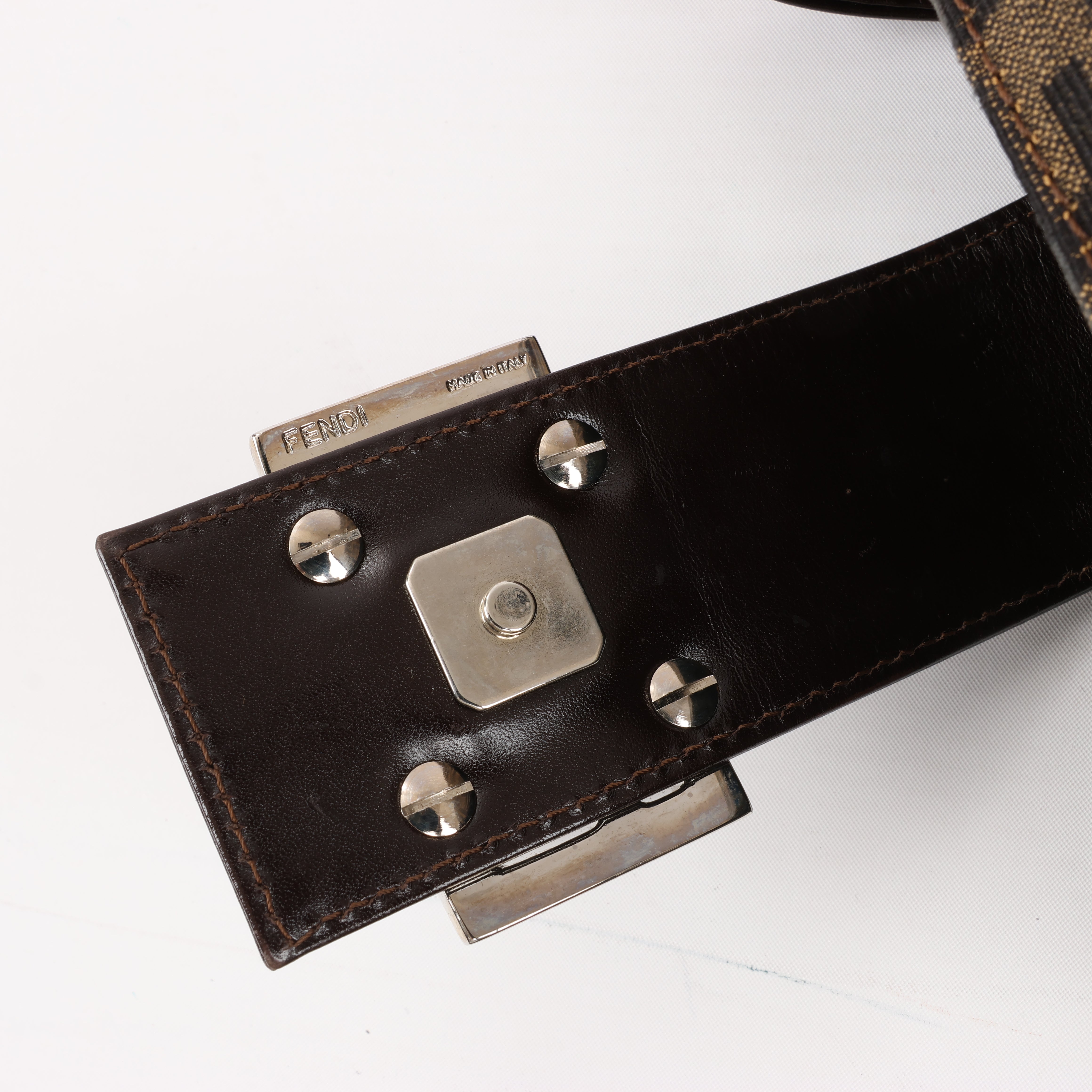 Classic FENDI style meets everyday elegance in this Zucchino Mamma Bucket bag. Crafted in brown monogram canvas with leather trim and silver-tone buckle, it's a timeless shoulder piece with vintage allure.