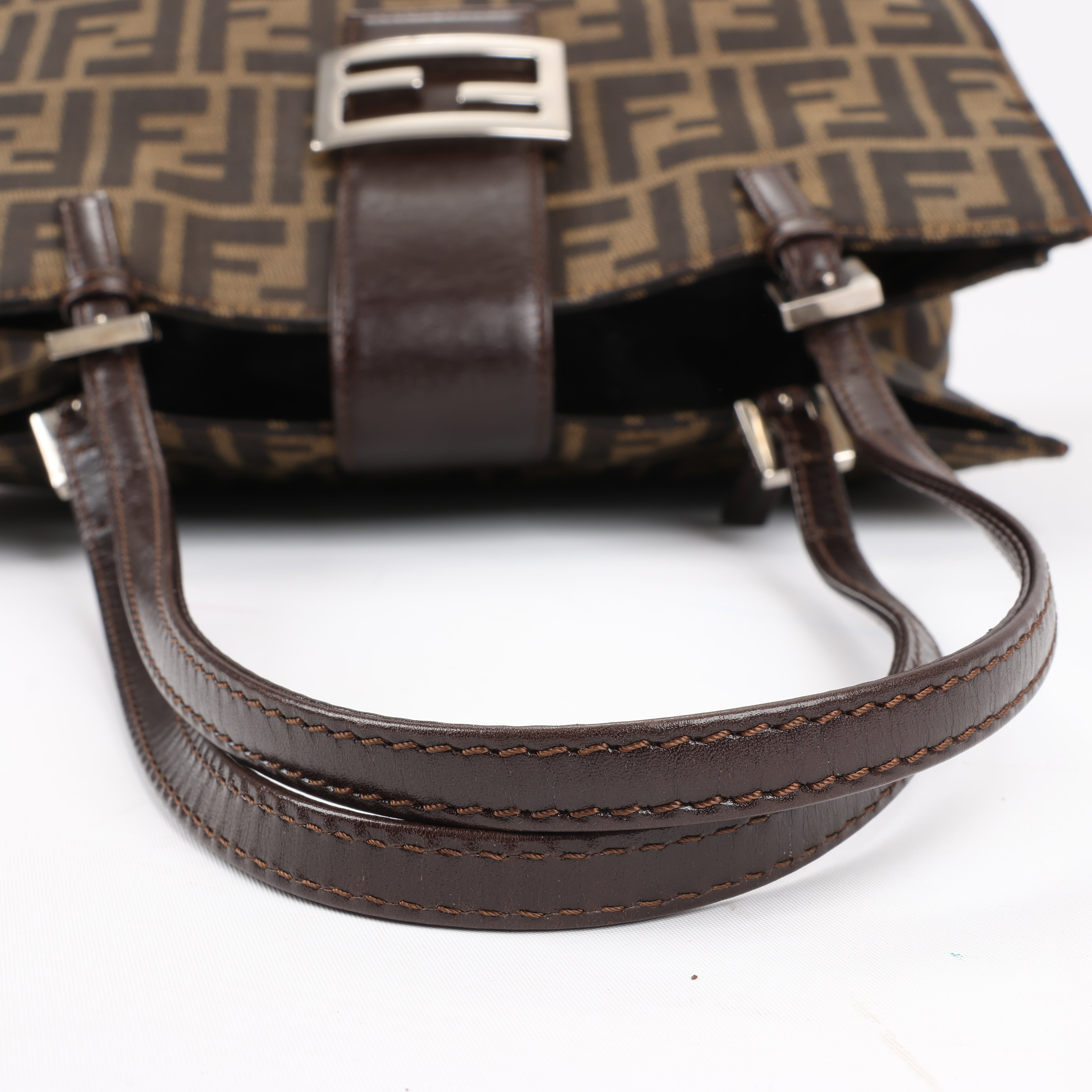 Fendi FENDI Zucchino Mamma Bucket Canvas & Leather Shoulder Bag in Brown