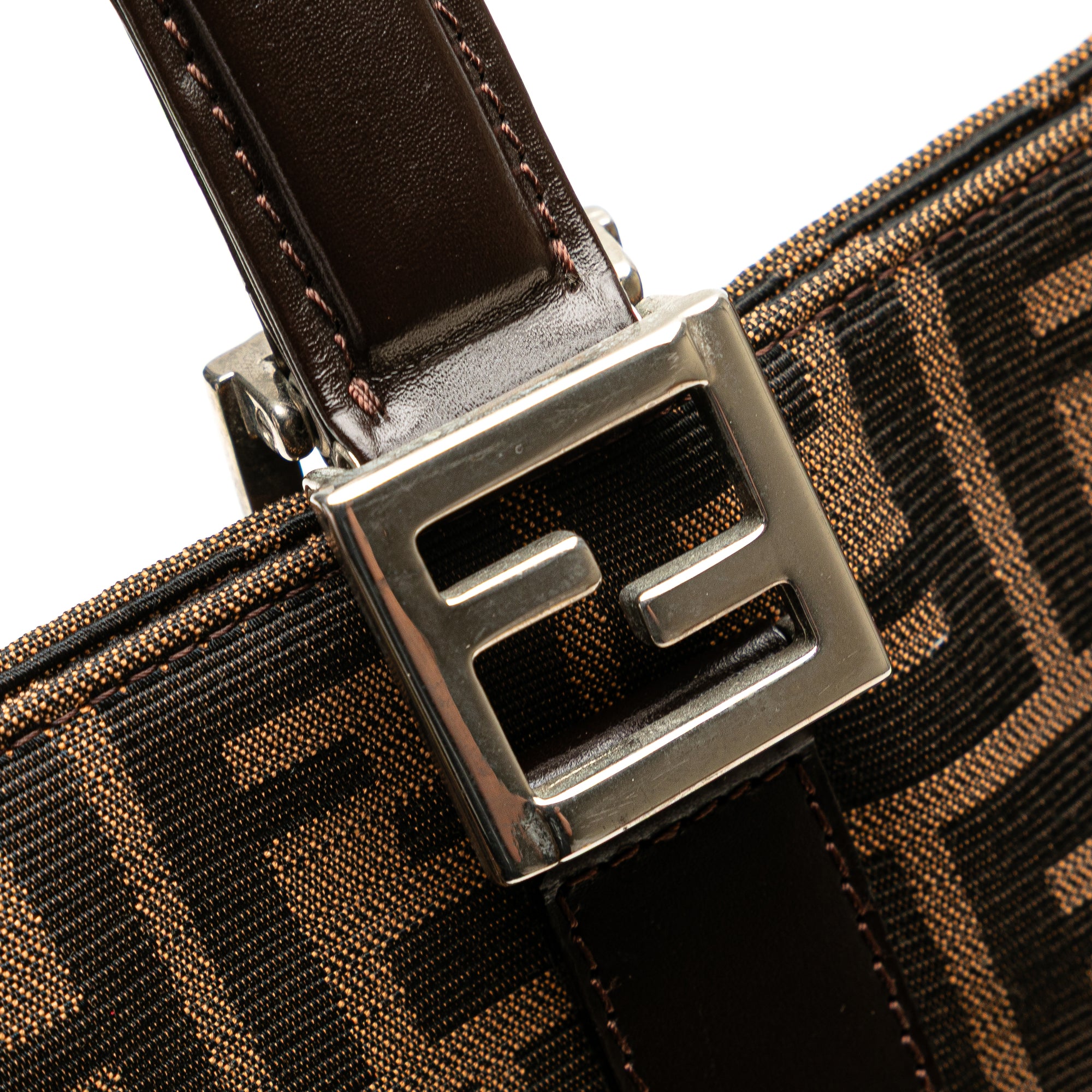 This tote bag features a canvas body, flat leather top handles, an open top with magnetic snap closure, and an interior zip pocket. Retail Price: 3590.00