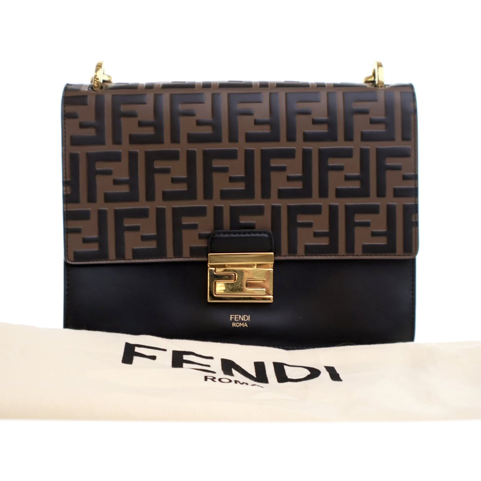 Fendi Medium FF 1974 Embossed Leather Kan U Top Handle Bag