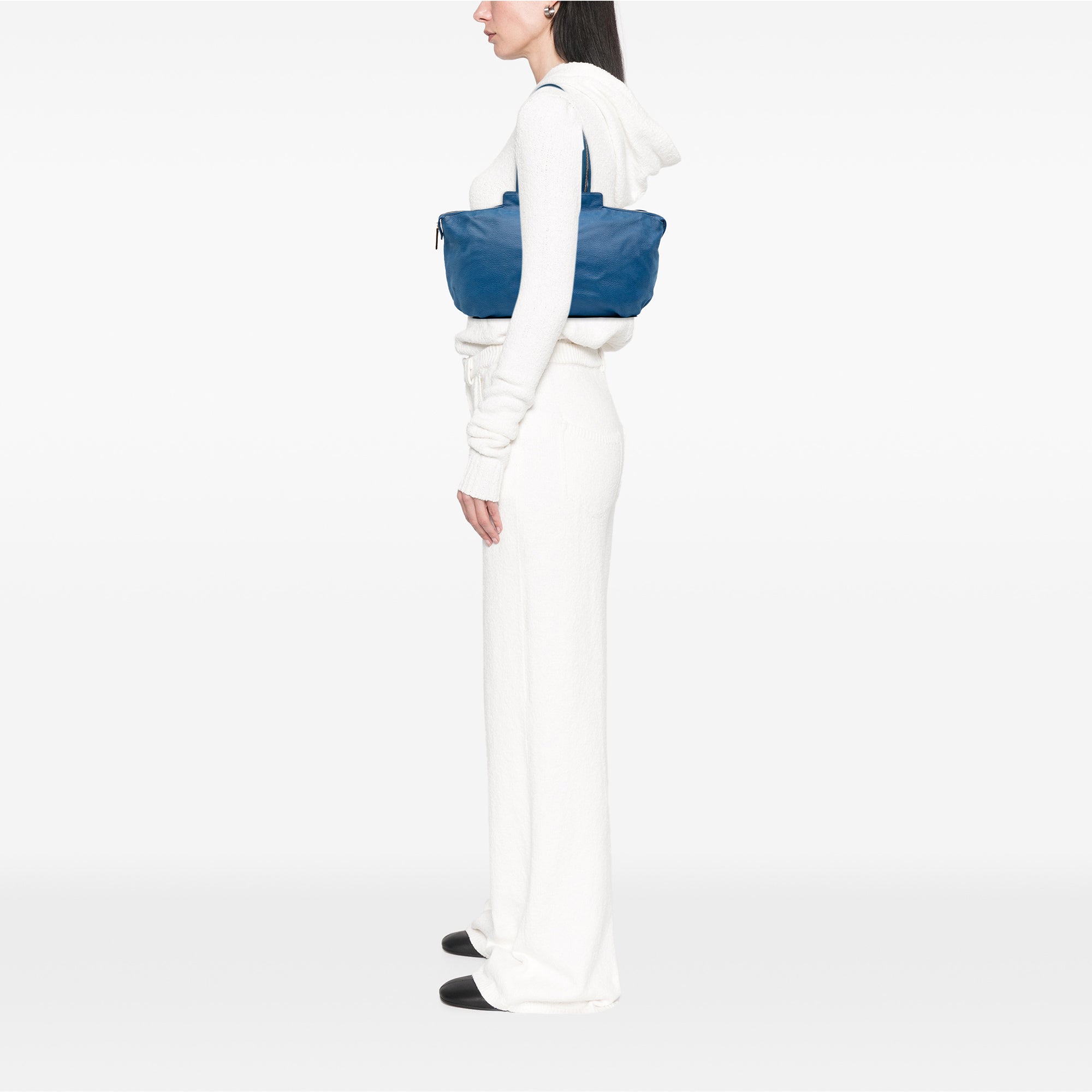This tote bag features a leather body, flat leather straps with chain details, a top zip closure, and interior slip pockets. Retail Price: 990.00