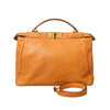 The Fendi Medium Peekaboo Bag is a vintage brown leather bag with golden-tone hardware. It features a single rolled handle and tonal lining with two compartments and one interior pocket. Can be carried by hand and as a crossbody with the removable strap.