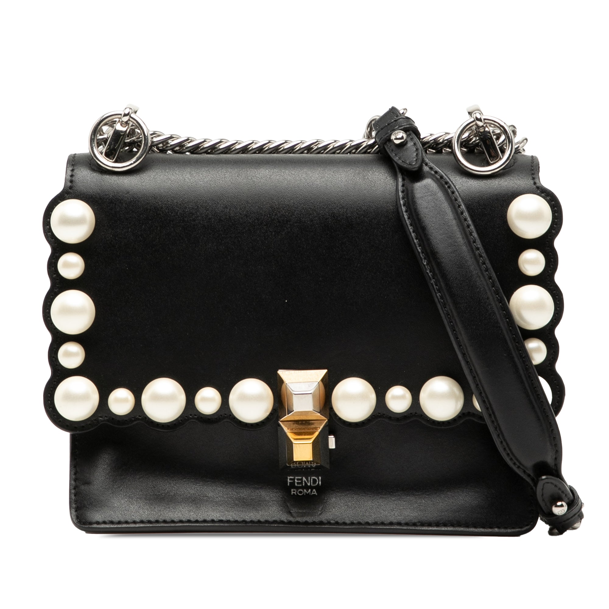 Fendi Mini Scalloped Leather and Pearls Kan I Crossbody
