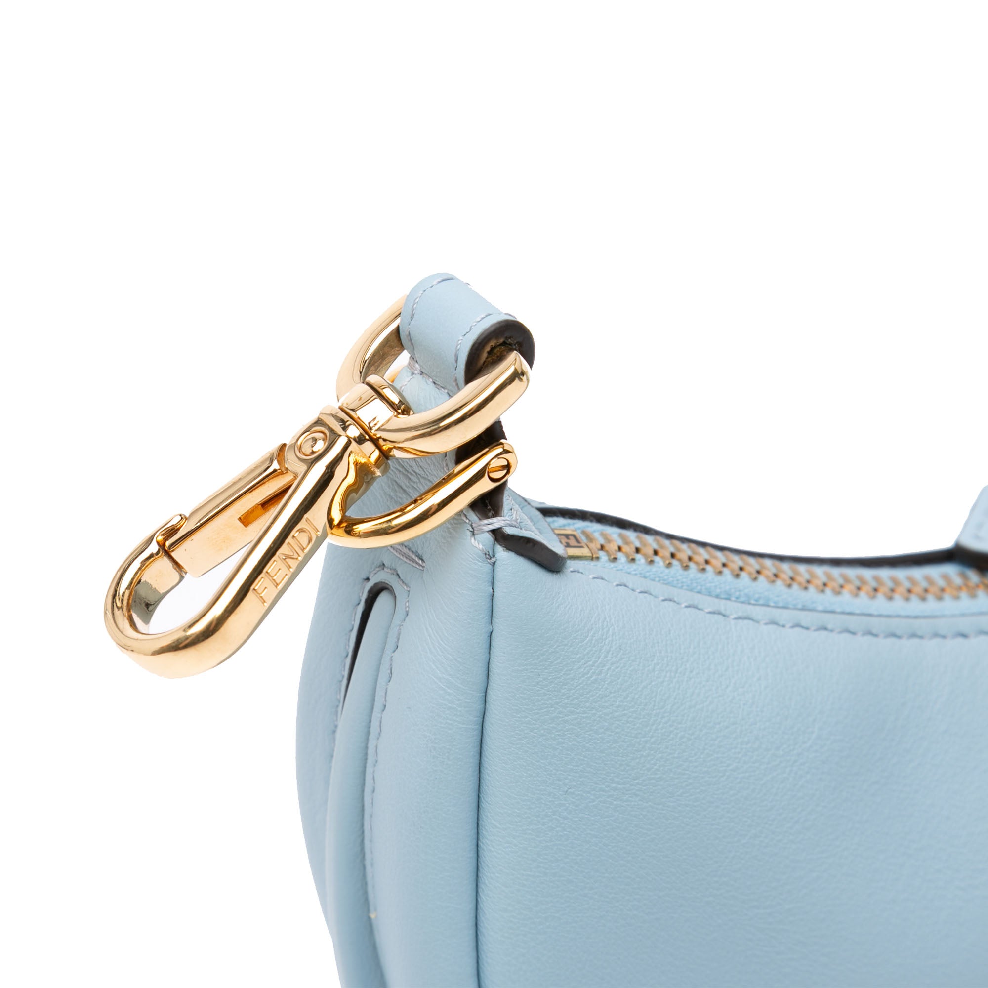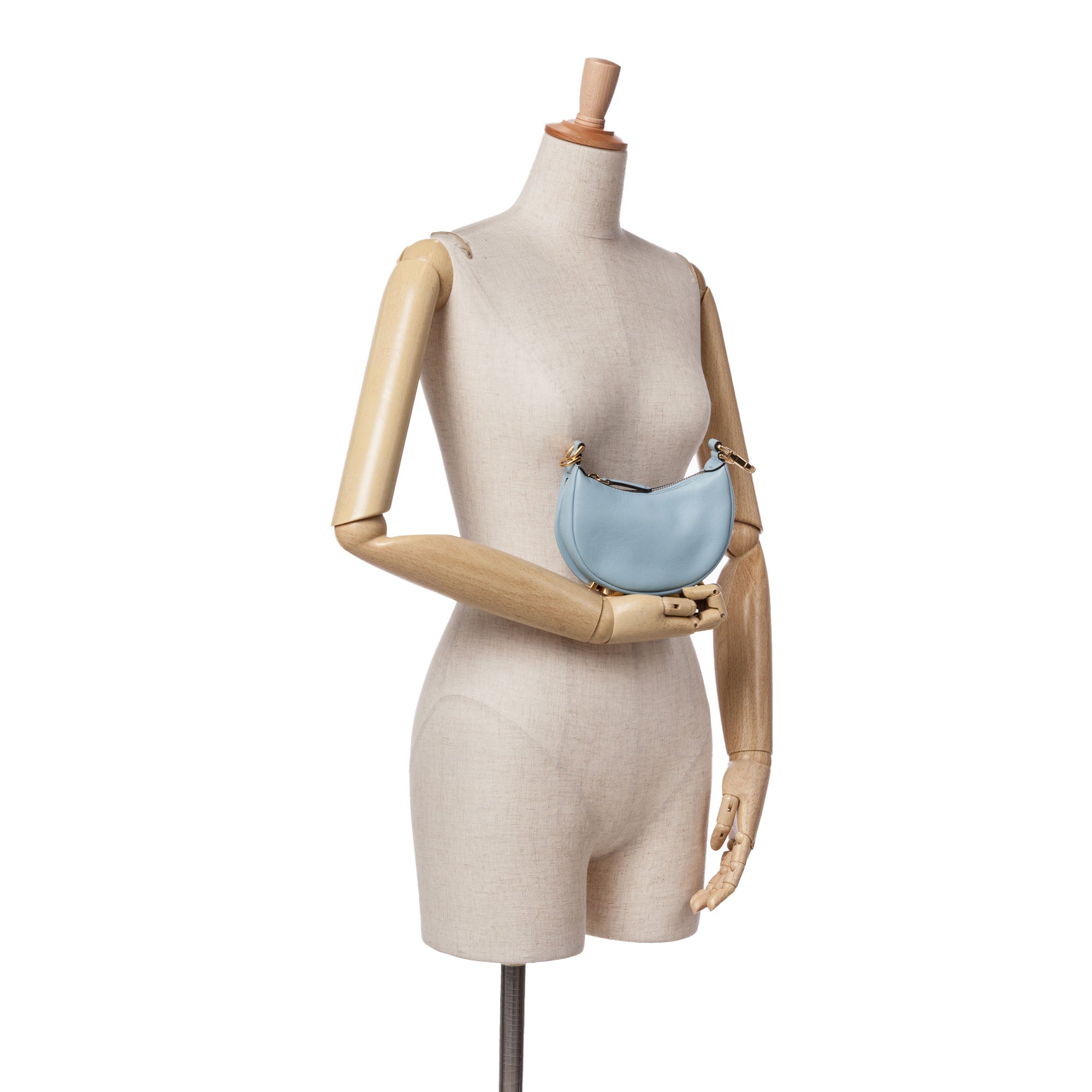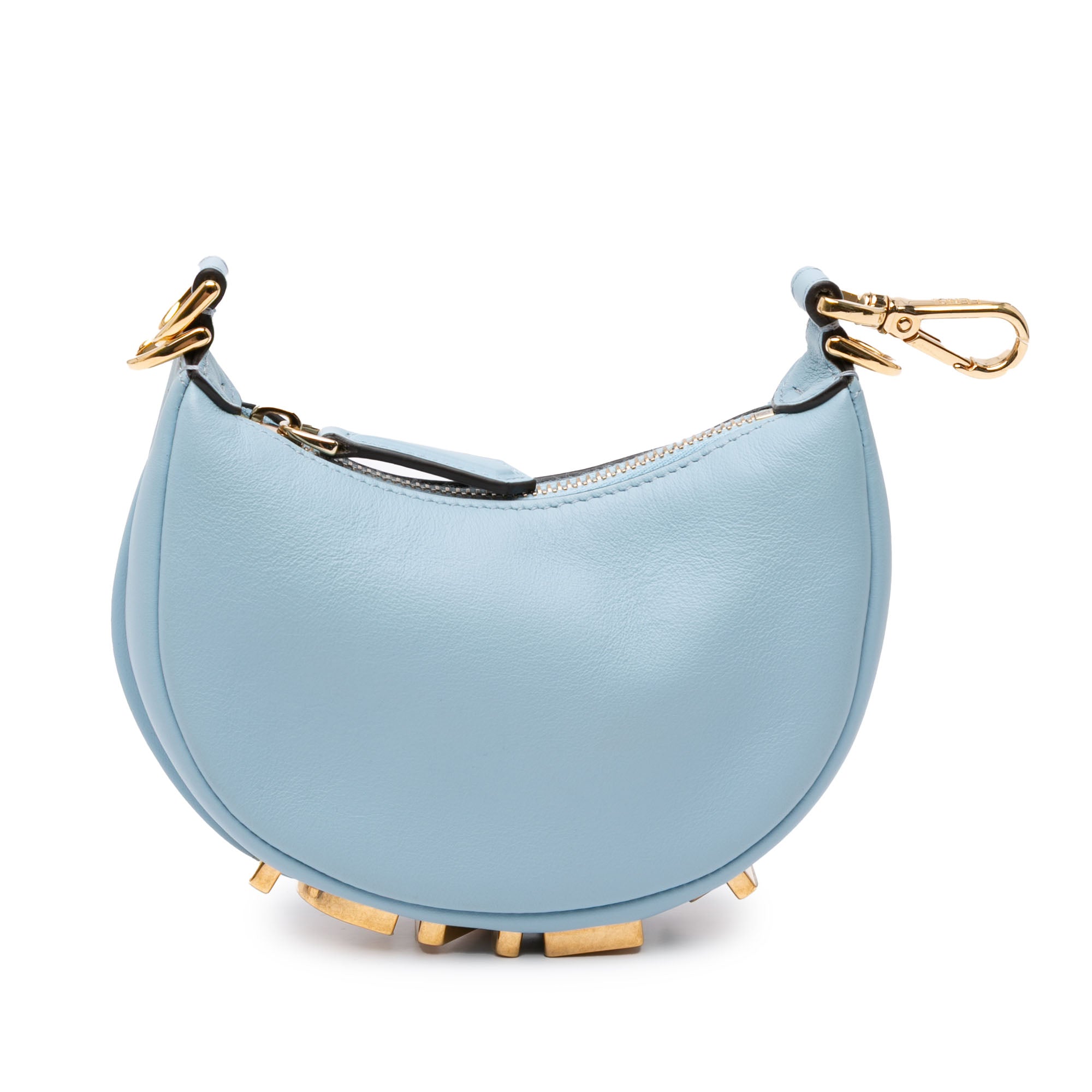 The Fendigraphy features a leather body, an adjustable flat leather handle, and a top zip closure. Retail Price: 1350.00