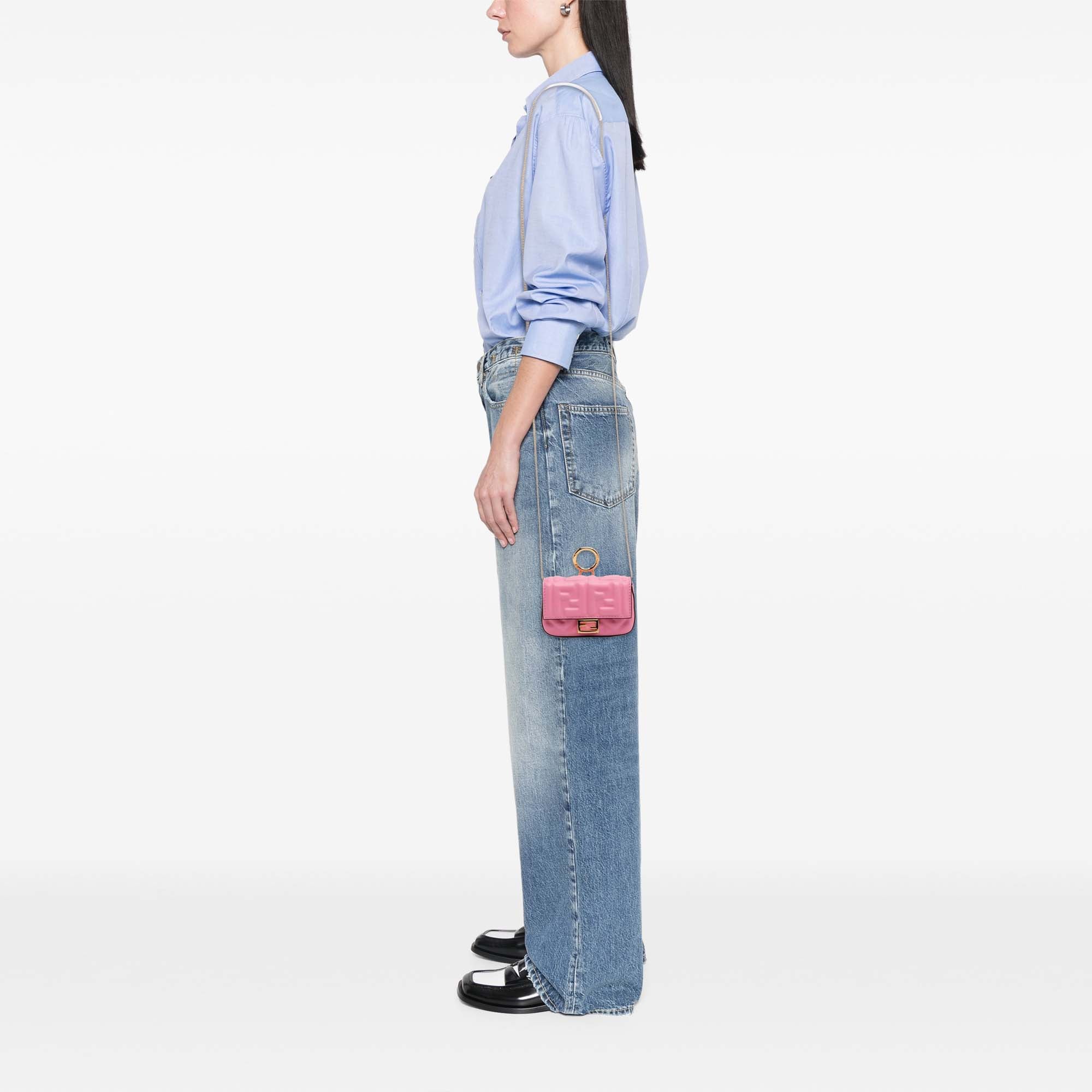 Fendi Nano Zucca Embossed Leather Baguette Charm
