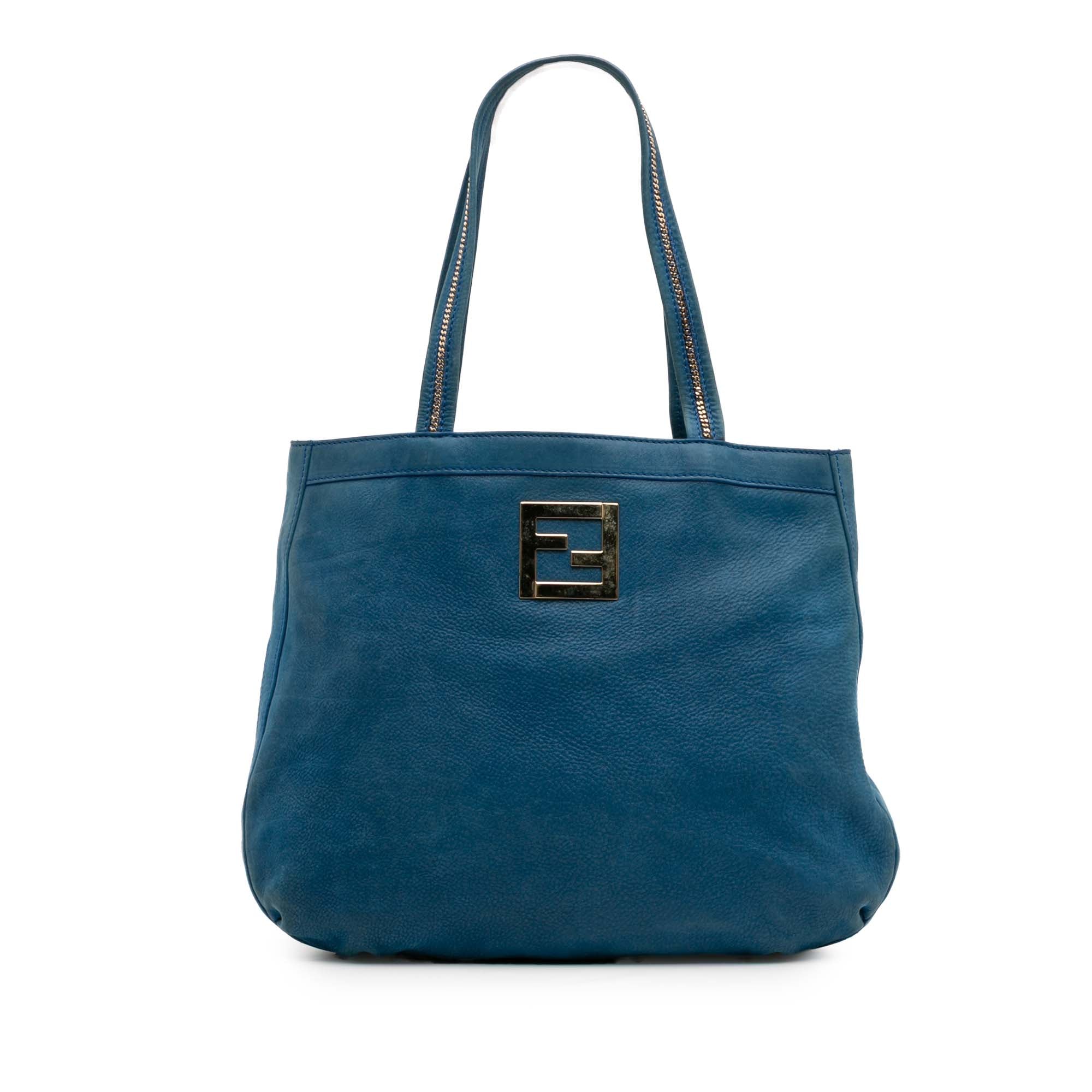This tote bag features a nubuck leather body, flat leather handles with chain details, an open top, an interior zip compartment, and an interior slip pocket. Retail Price: 3670.00
