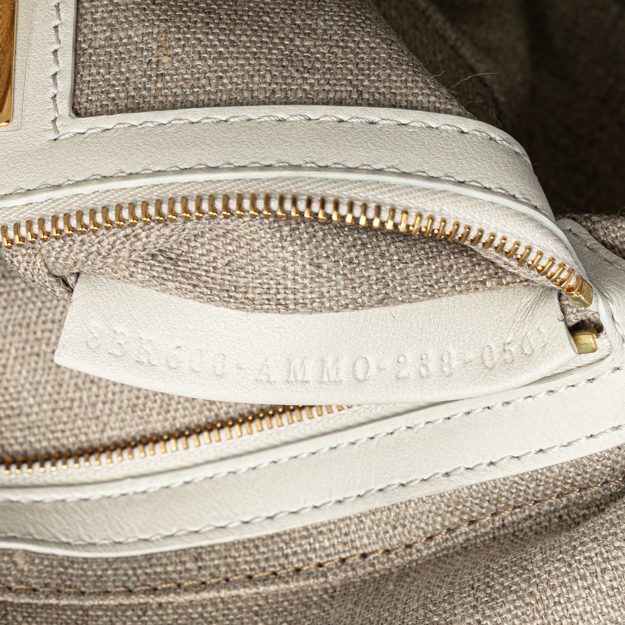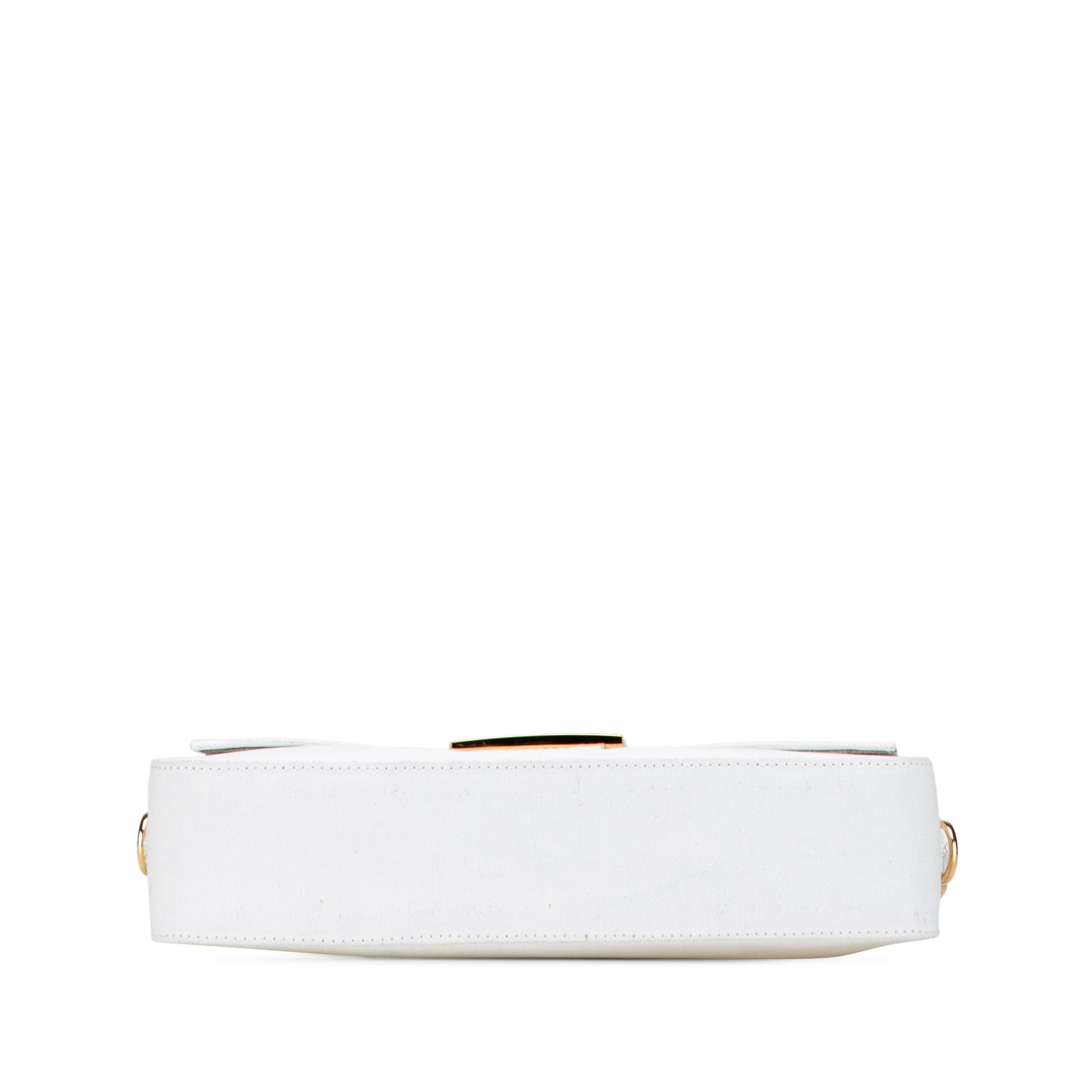 This satchel features a canvas body, a detachable leather top handle, a detachable flat strap, a front flap with magnetic snap closure, and an interior zip pocket. This set features a canvas baguette with leather strap, and a complete painting kit. Inclusion: Dust bag, box. Retail Price: 3514.00