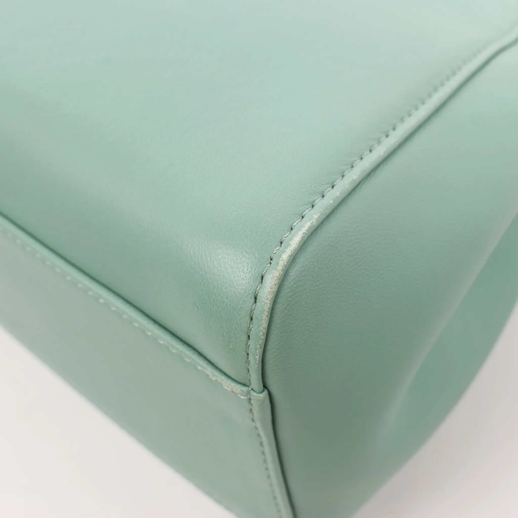 The Fendi Peekaboo Mini 2Way Handbag in soft green leather is a timeless statement piece with modern flair. Featuring luxurious calfskin construction, signature twist-lock closure, and gold-tone hardware, it transitions effortlessly from hand-carry to crossbody.