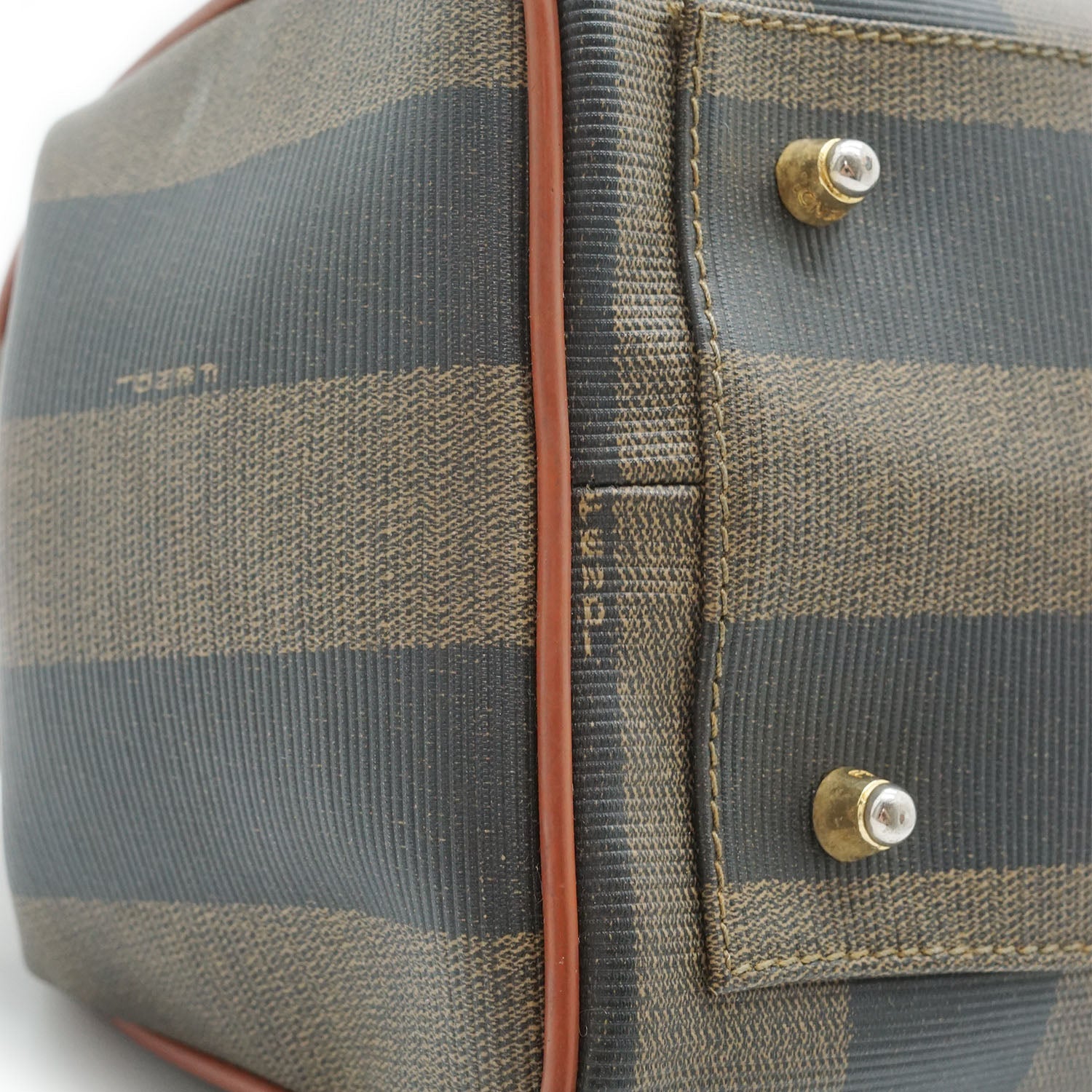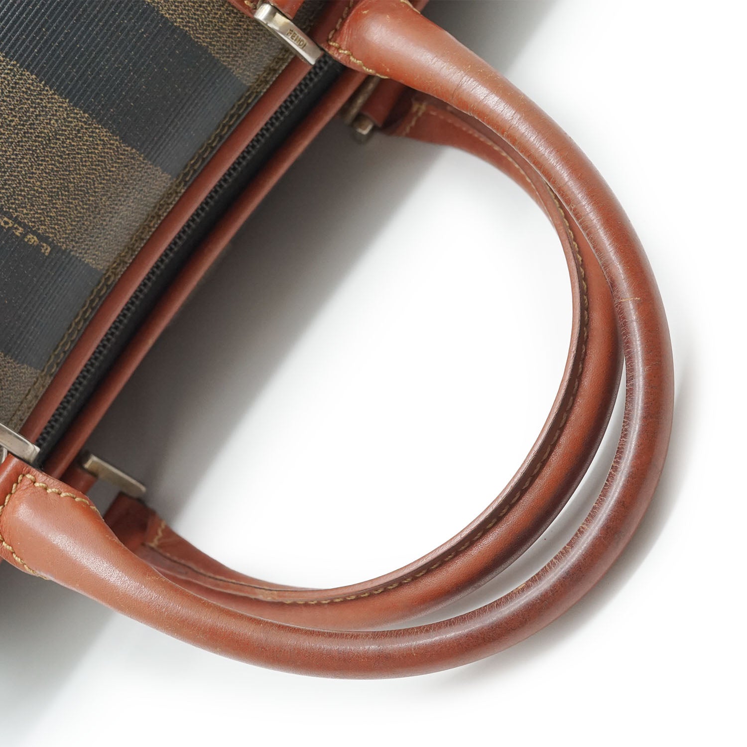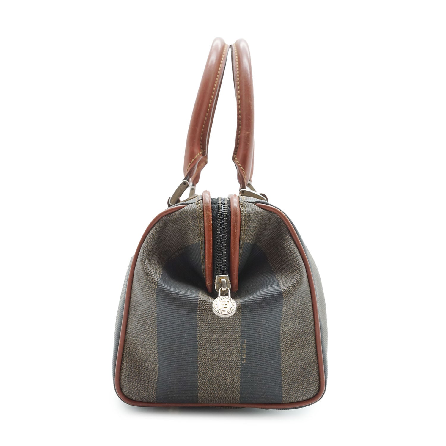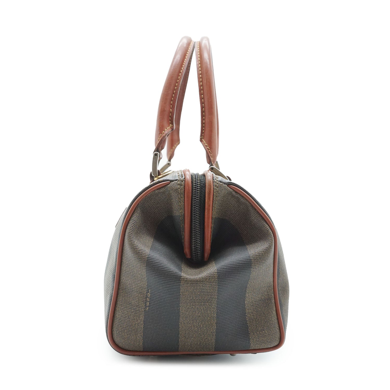 Pequin Mini Boston Bag Brown Canvas, LeatherDepth: 14.5cmHeight: 14cmWidth: 27cmHand Drop: 14.5cmOutside Rank: BInside Rank: BDiscoloration: Visible hardware tarnish, some leather discoloration on the top handles overallScratch: Minor rubbing along the leather pipingPeeling: Minor leather crack on the inside, some powdering throughout the insideTear: Small tear on the canvas on one sideMissing: Shoulder strap missing