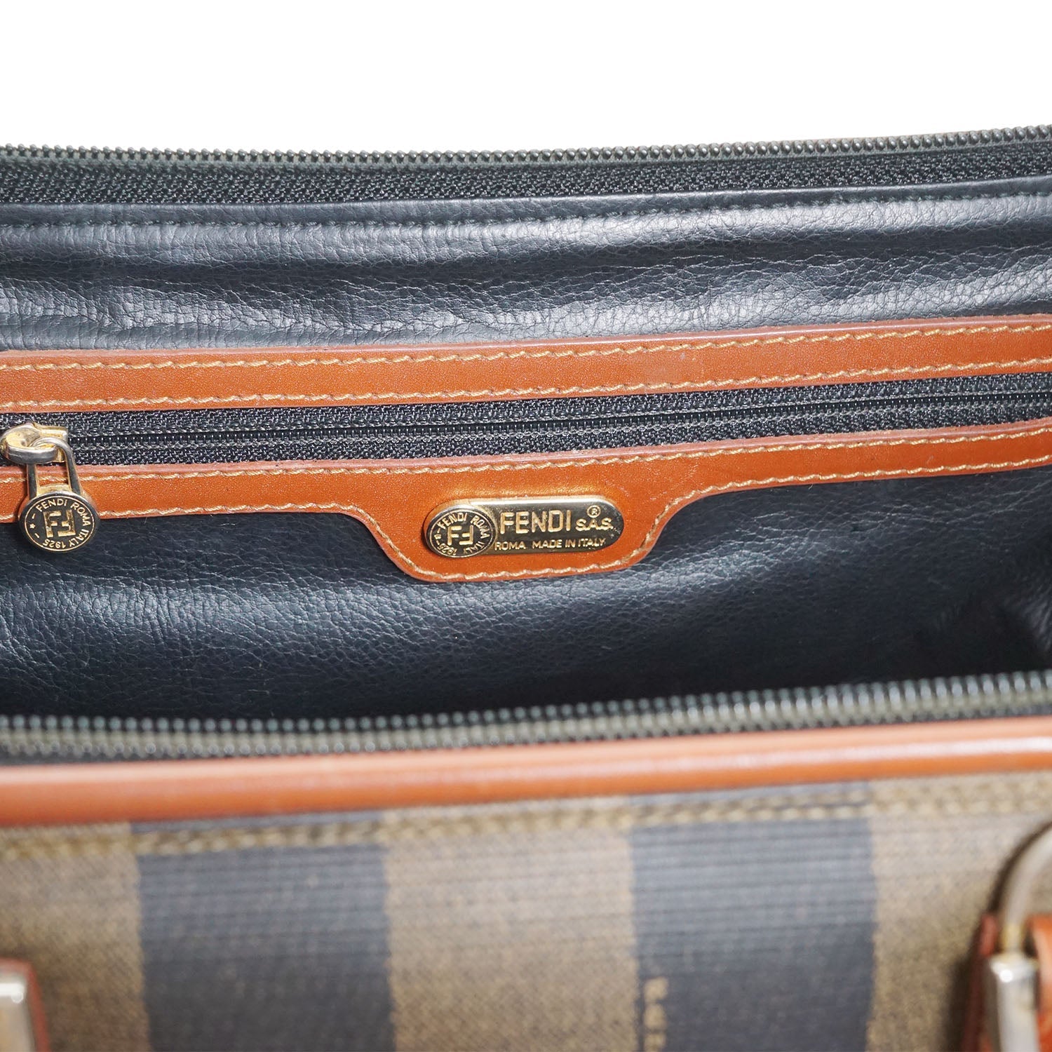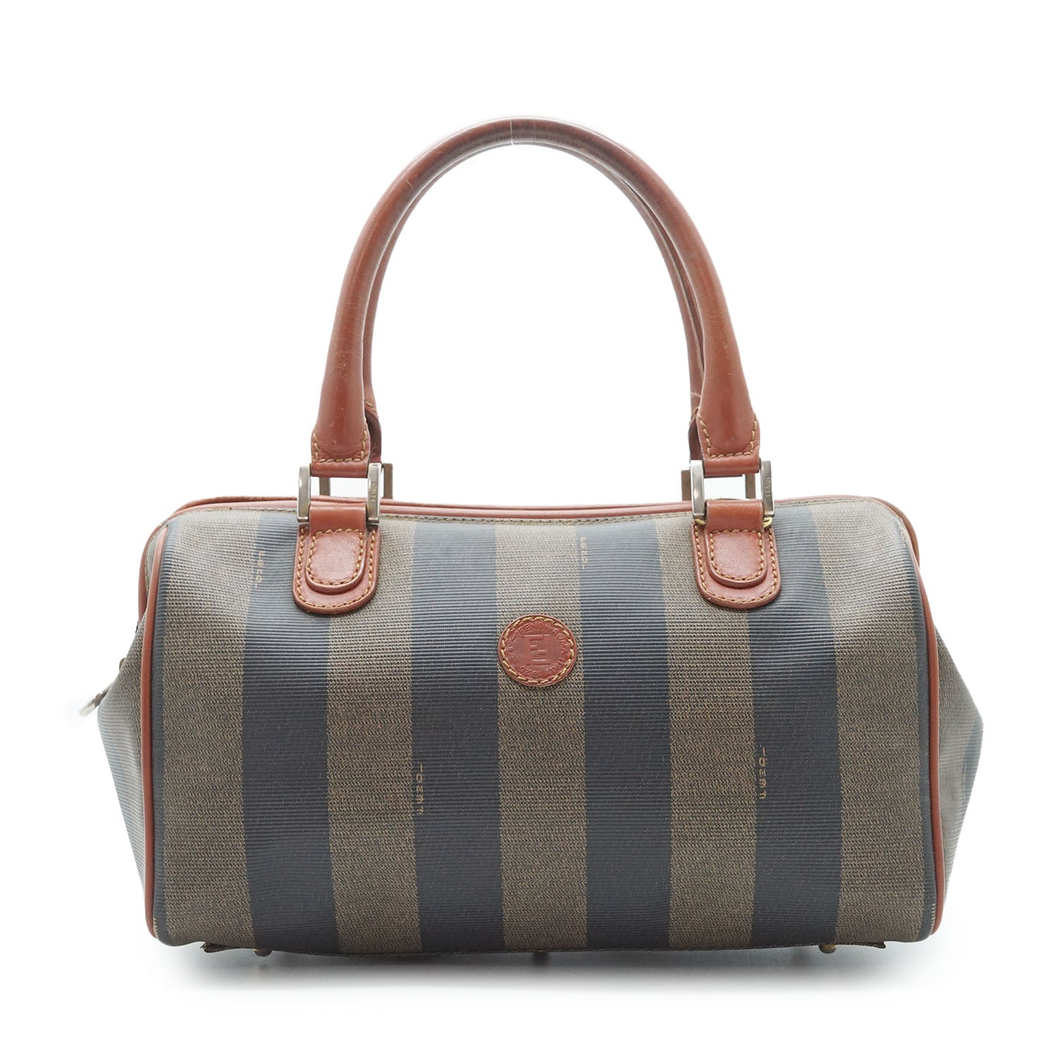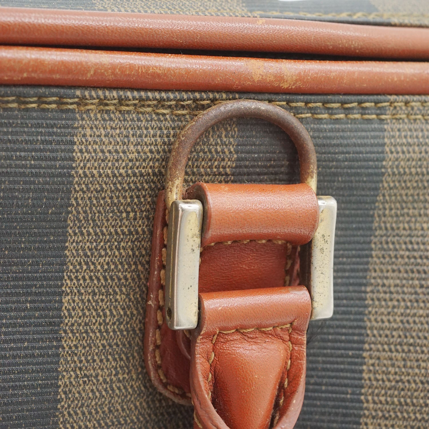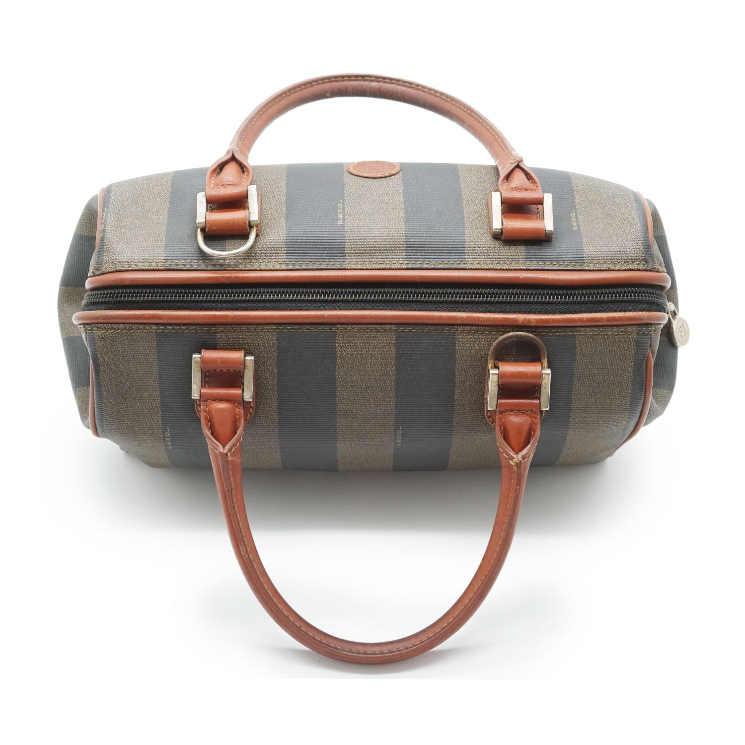 Pequin Mini Boston Bag Brown Canvas, LeatherDepth: 14.5cmHeight: 14cmWidth: 27cmHand Drop: 14.5cmOutside Rank: BInside Rank: BDiscoloration: Visible hardware tarnish, some leather discoloration on the top handles overallScratch: Minor rubbing along the leather pipingPeeling: Minor leather crack on the inside, some powdering throughout the insideTear: Small tear on the canvas on one sideMissing: Shoulder strap missing