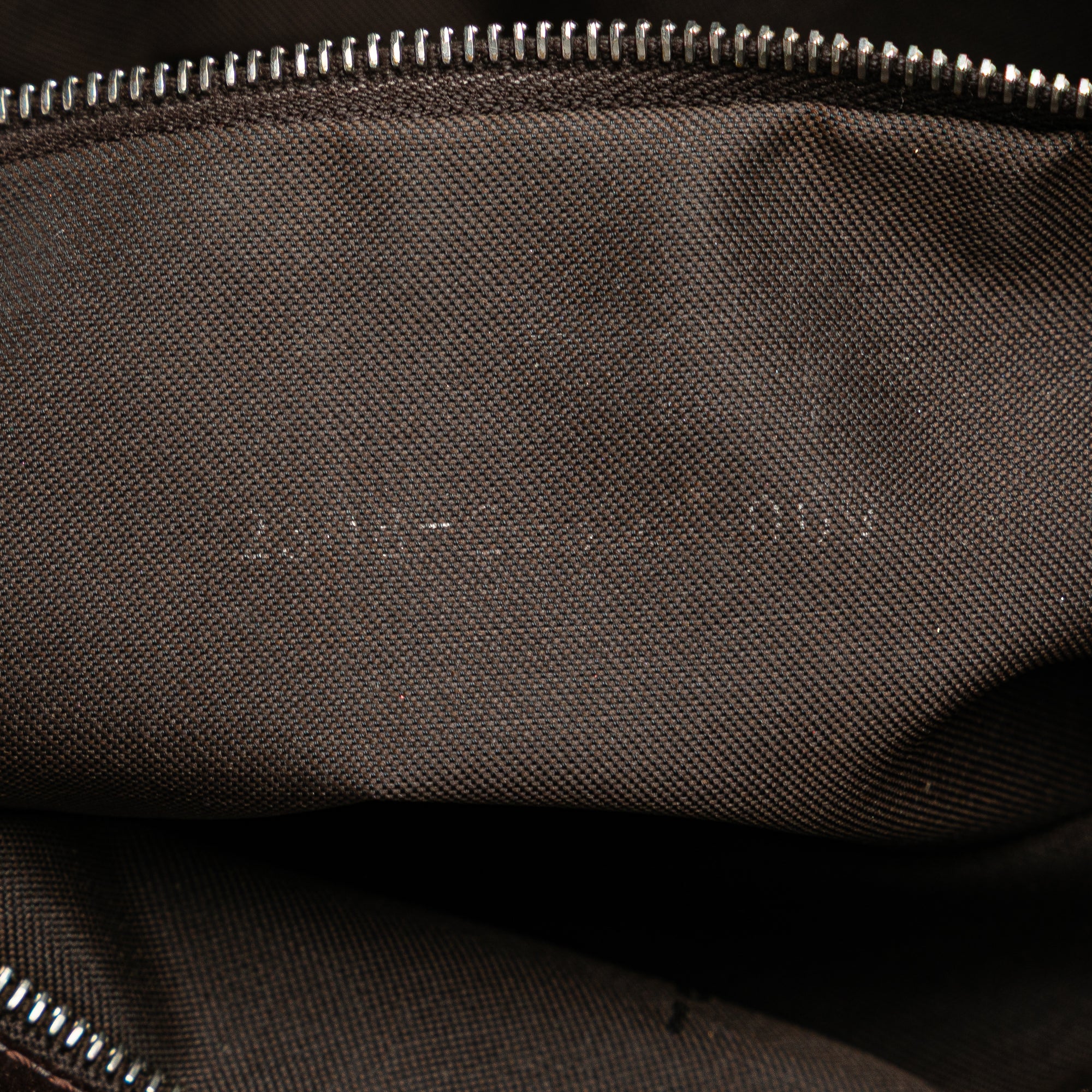 This tote features a canvas body, flat leather top handles, an open top with magnetic closure, and an interior zip pocket. Retail Price: 1112.00