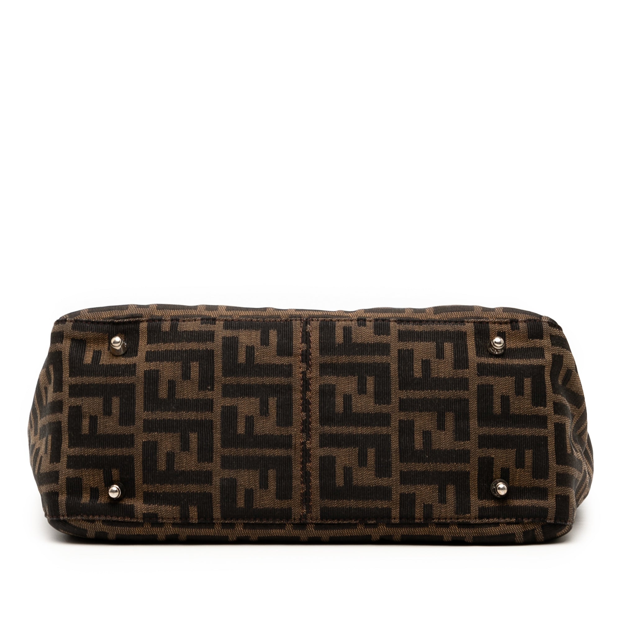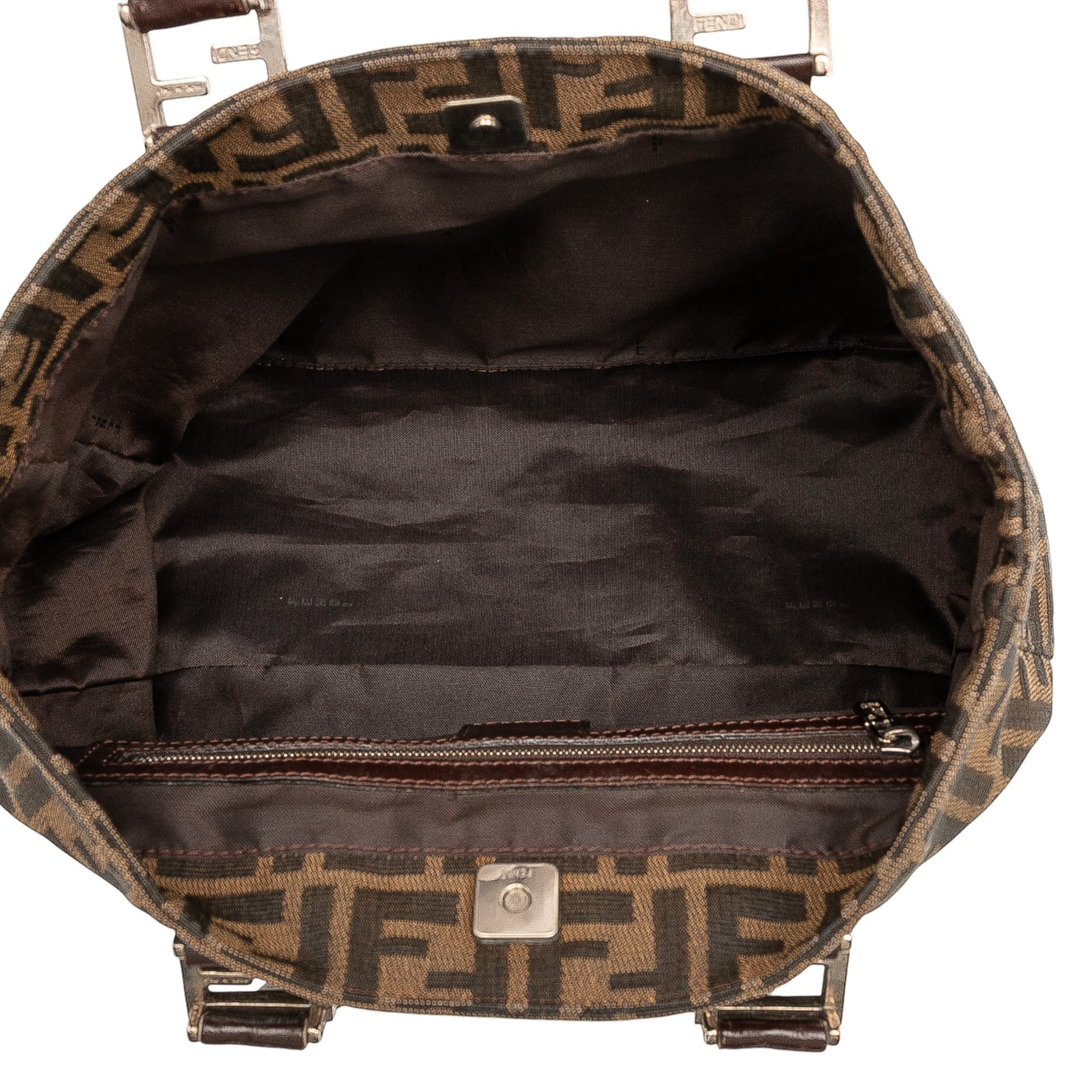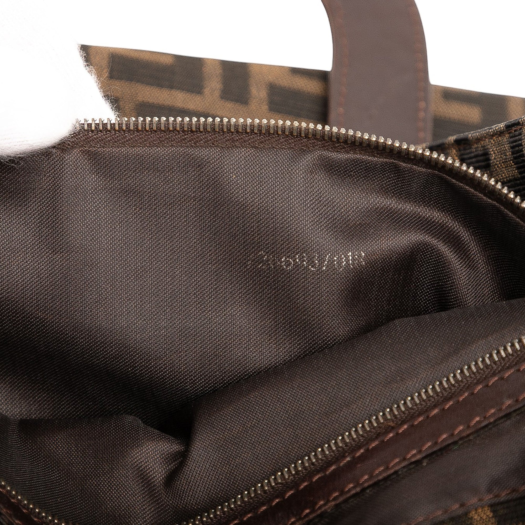 This tote features a canvas body, flat leather top handles, an open top with magnetic snap closure, and an interior zip pocket. Retail Price: 1112.00