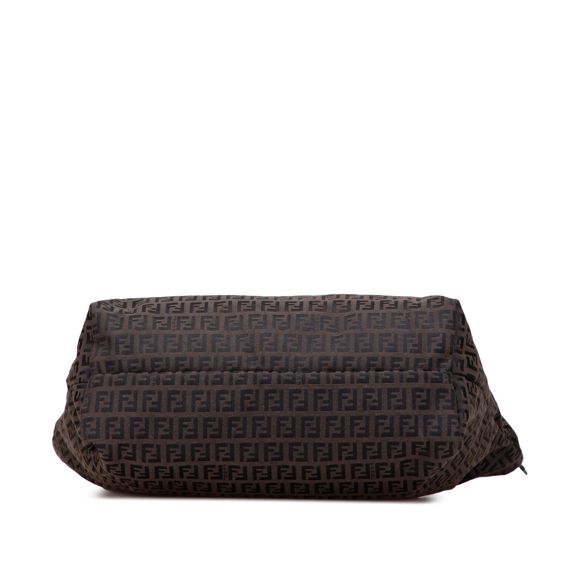 This tote bag features a canvas body, flat leather straps, a top zip closure, and an interior zip pocket. Retail Price: 1250.00