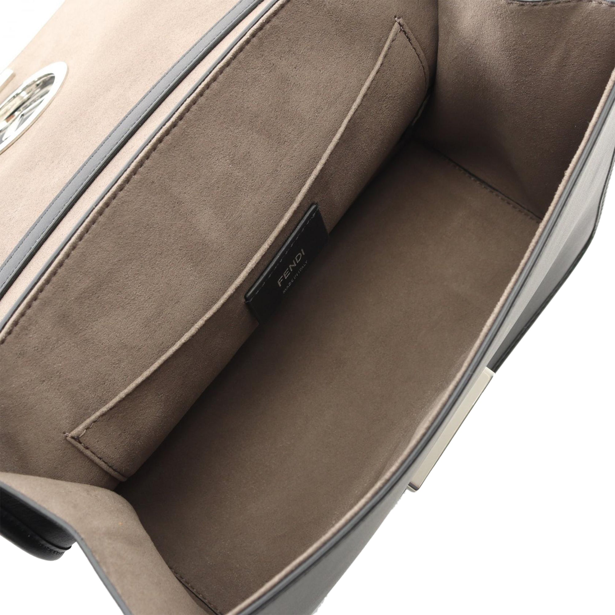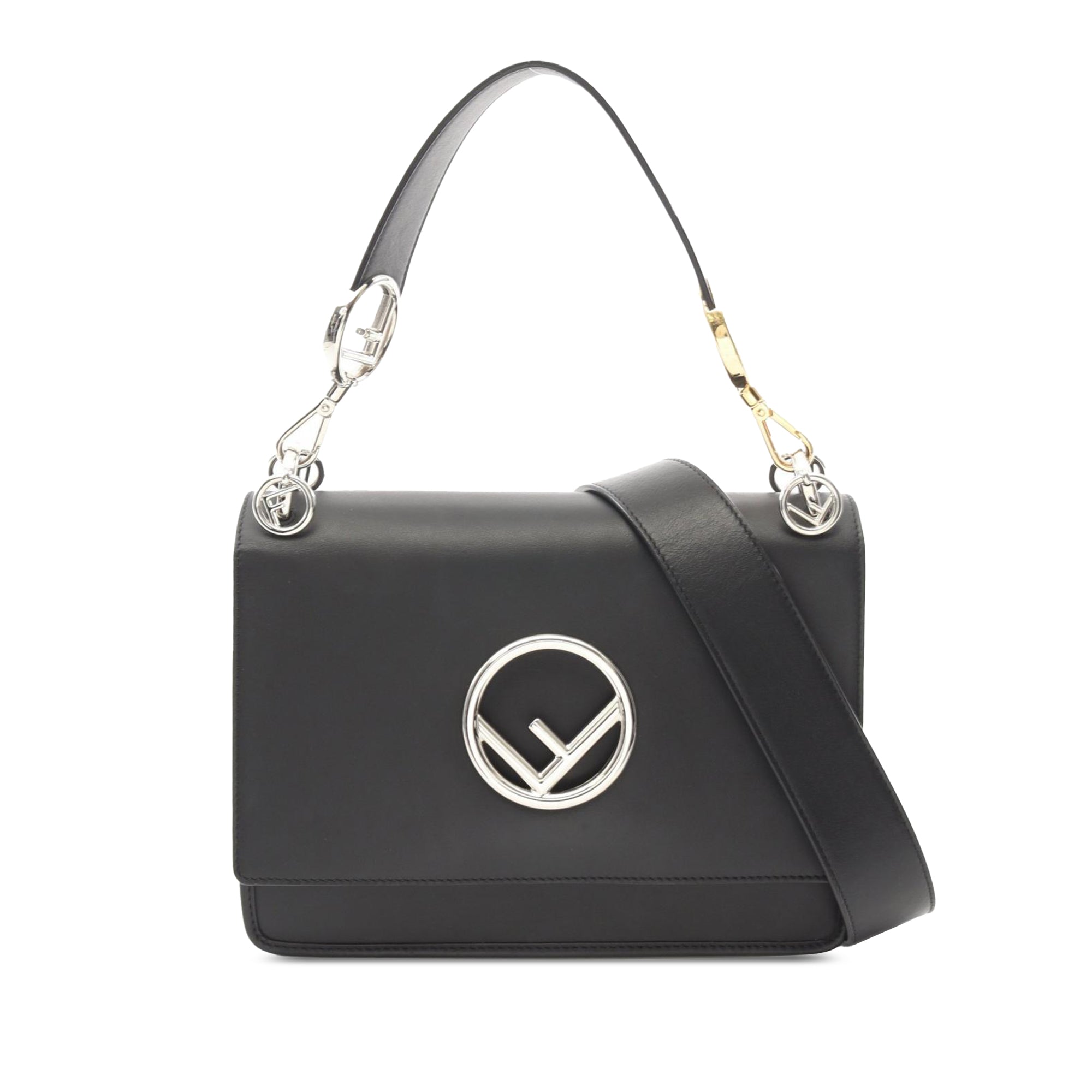 This satchel features a smooth leather body, a detachable flat leather handle, a detachable flat leather strap, a front flap with an F logo and snap closure, and an interior slip pocket. Retail Price: 2390.00