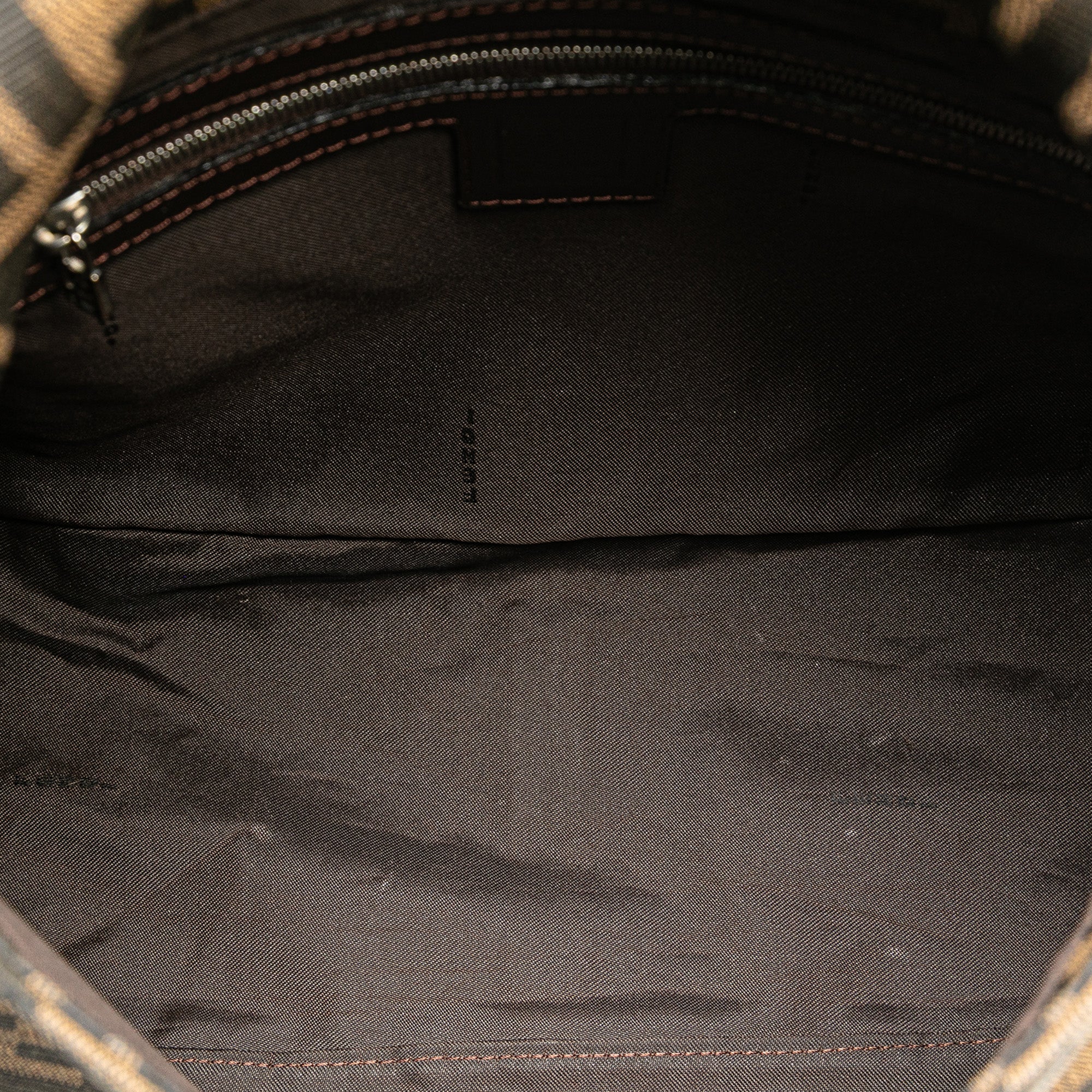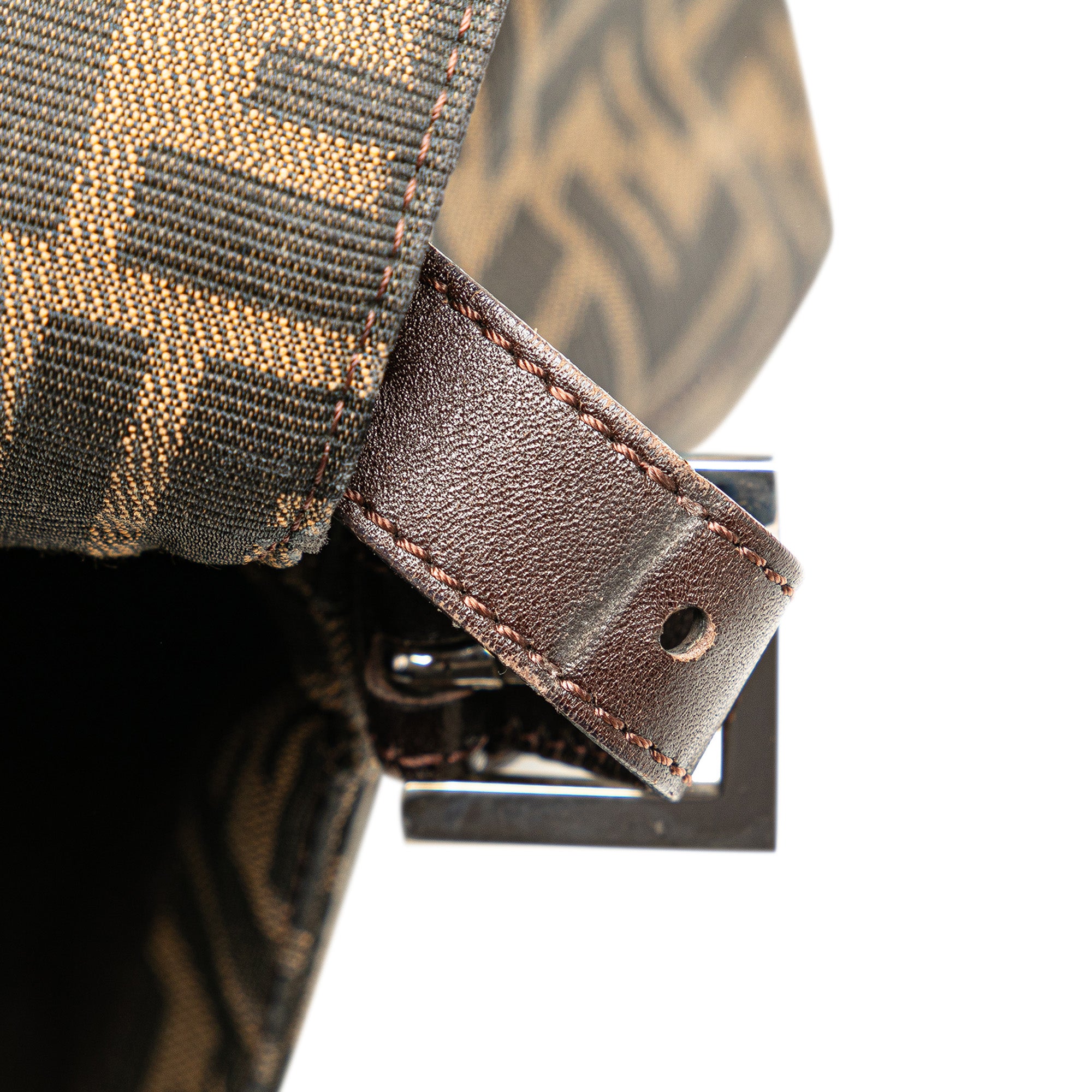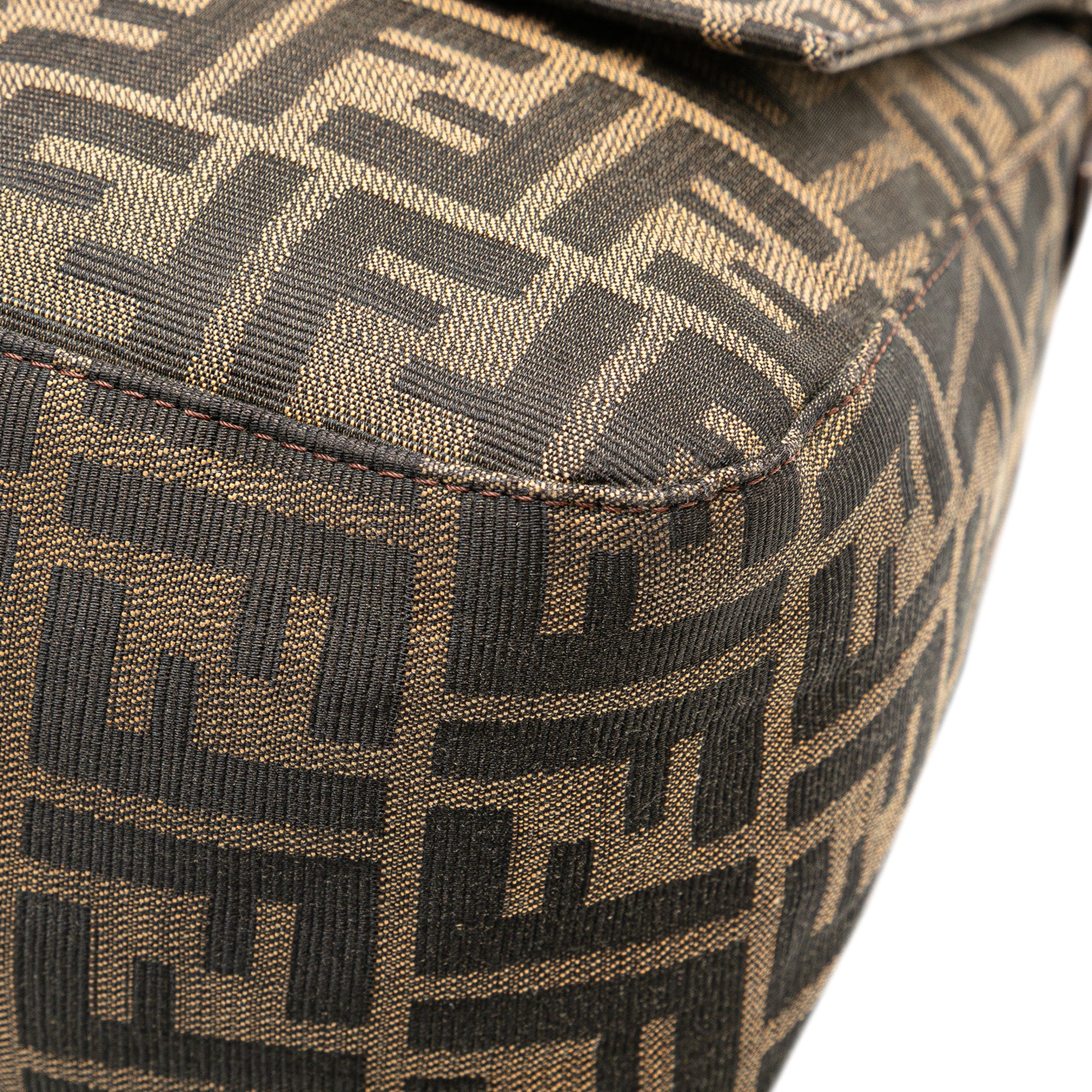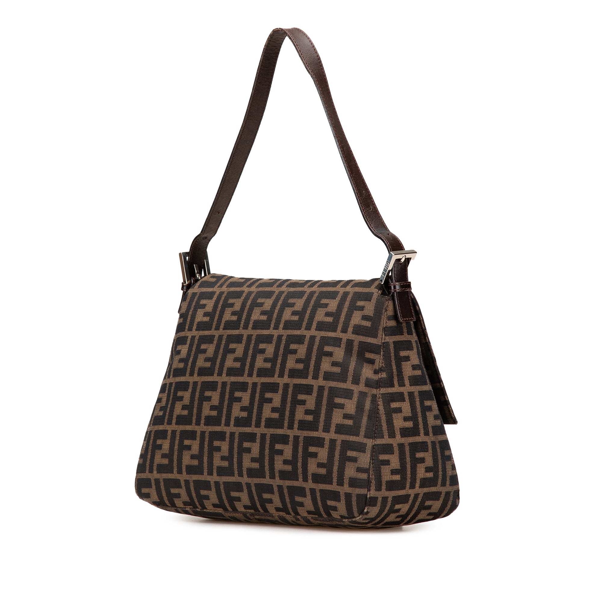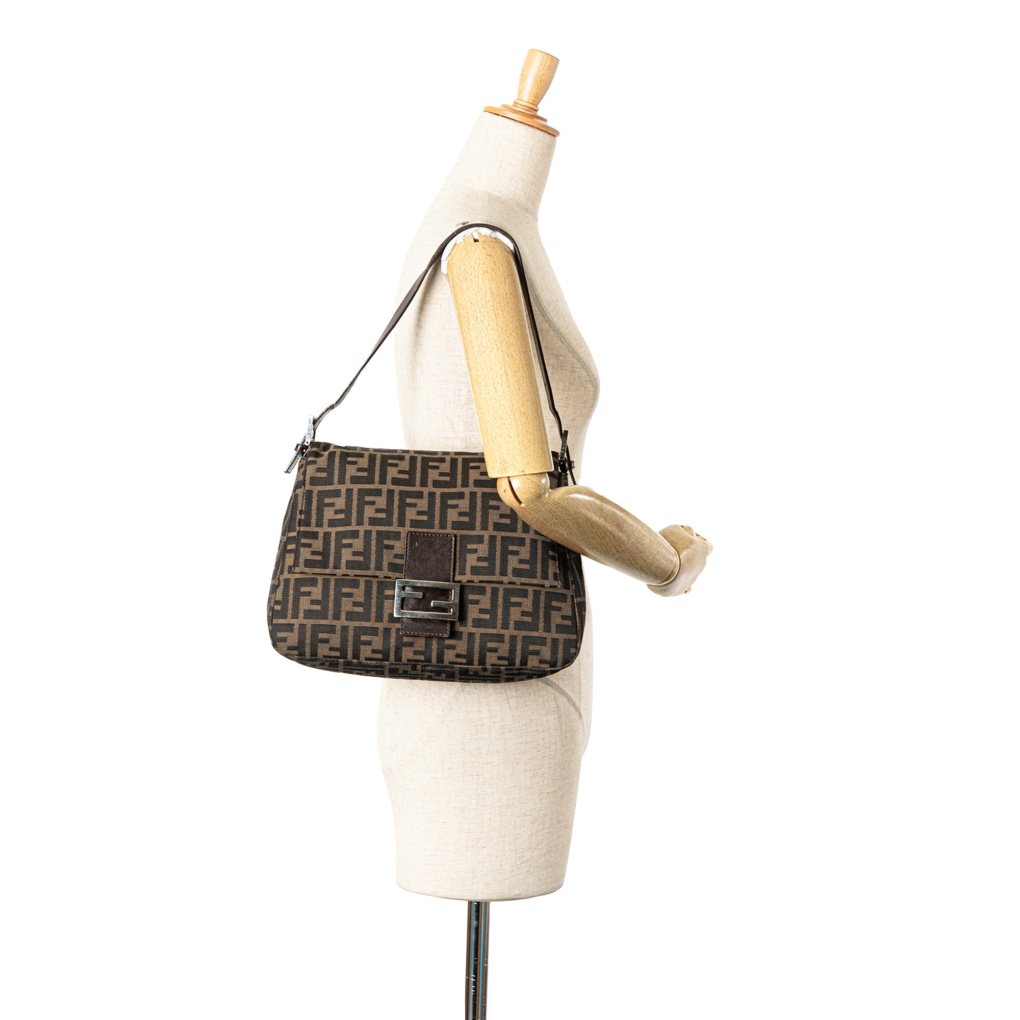 The Mamma Forever shoulder bag features a canvas body, an adjustable flat leather strap, a front flap with magnetic snap closure, and an interior zip pocket. Retail Price: 1450.00