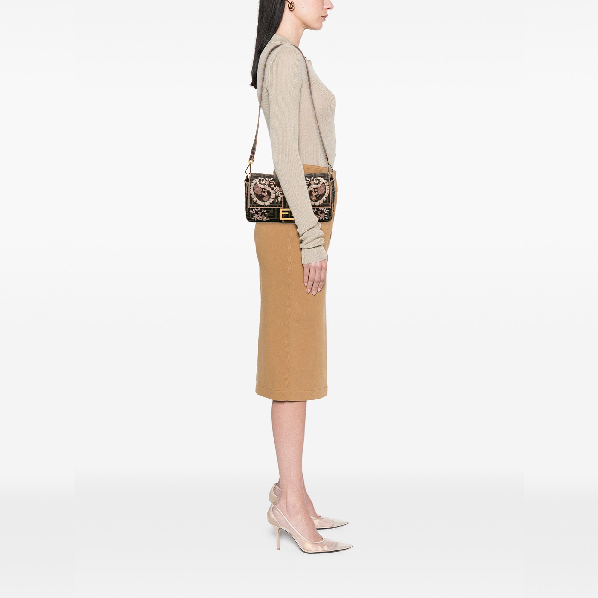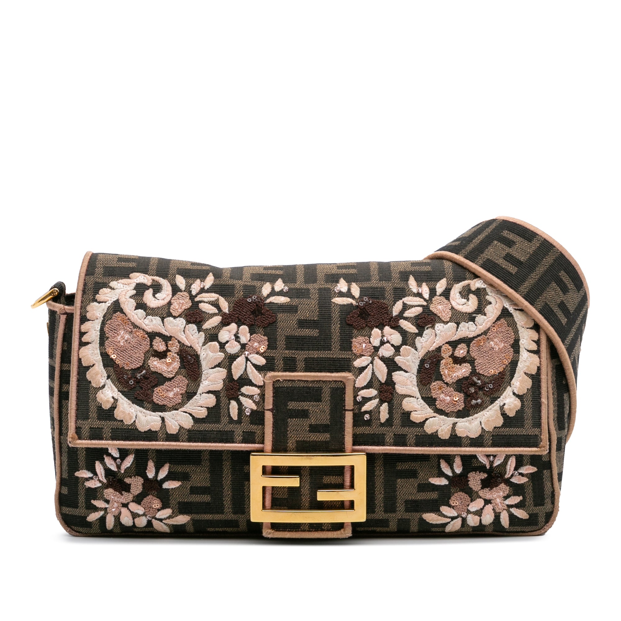Fendi Zucca Canvas Paisley Embroidery Baguette Satchel