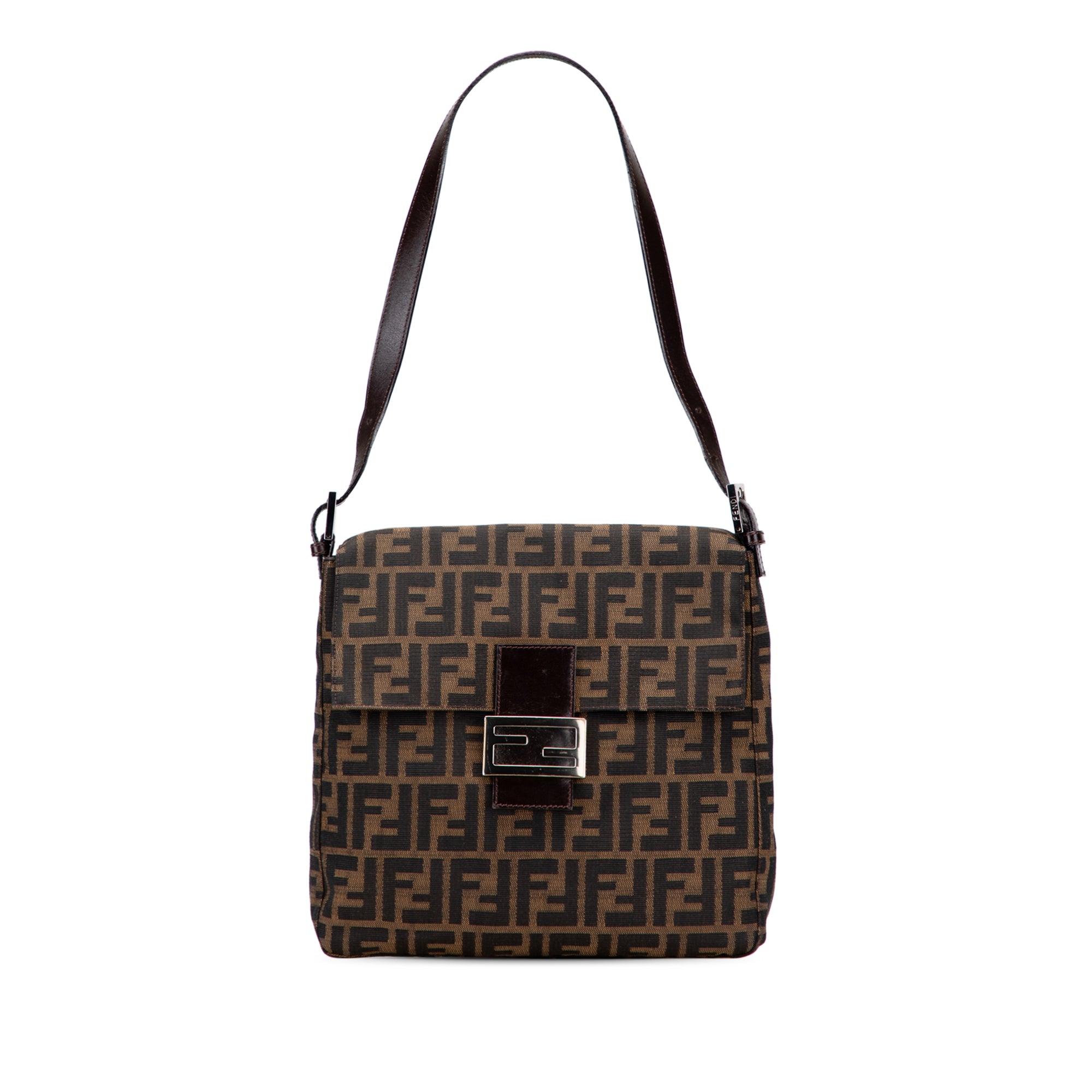 This shoulder bag features a canvas body, flat leather shoulder strap, a front flap with magnetic closure, and an interior zip pocket. Inclusion: Dust bag. Retail Price: 1780.00
