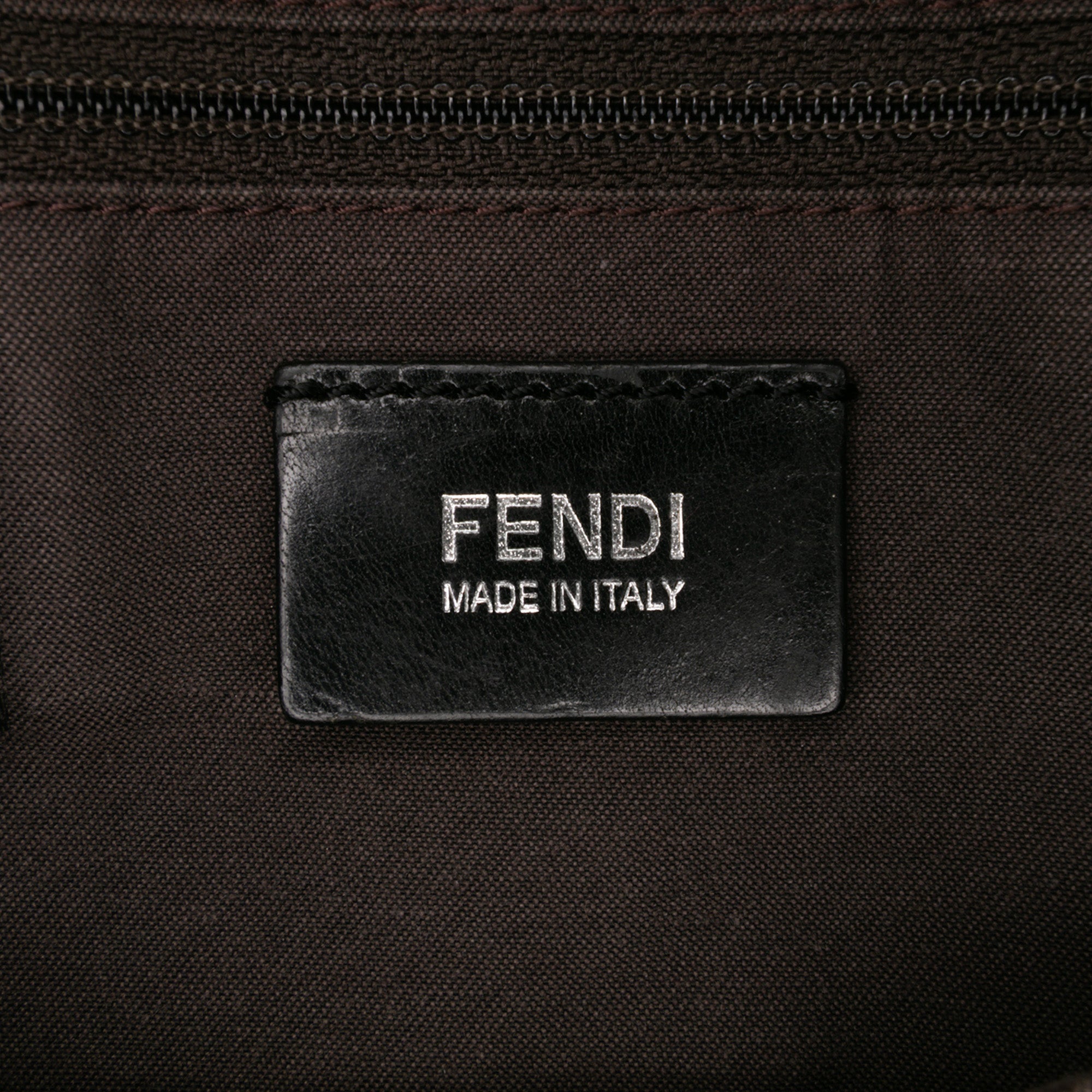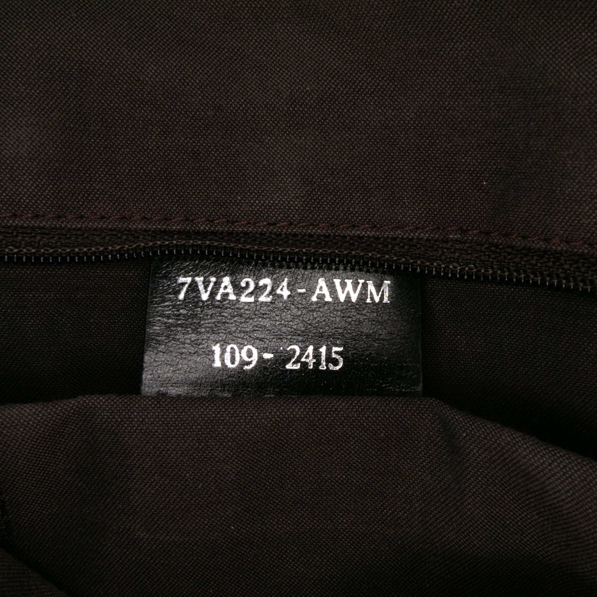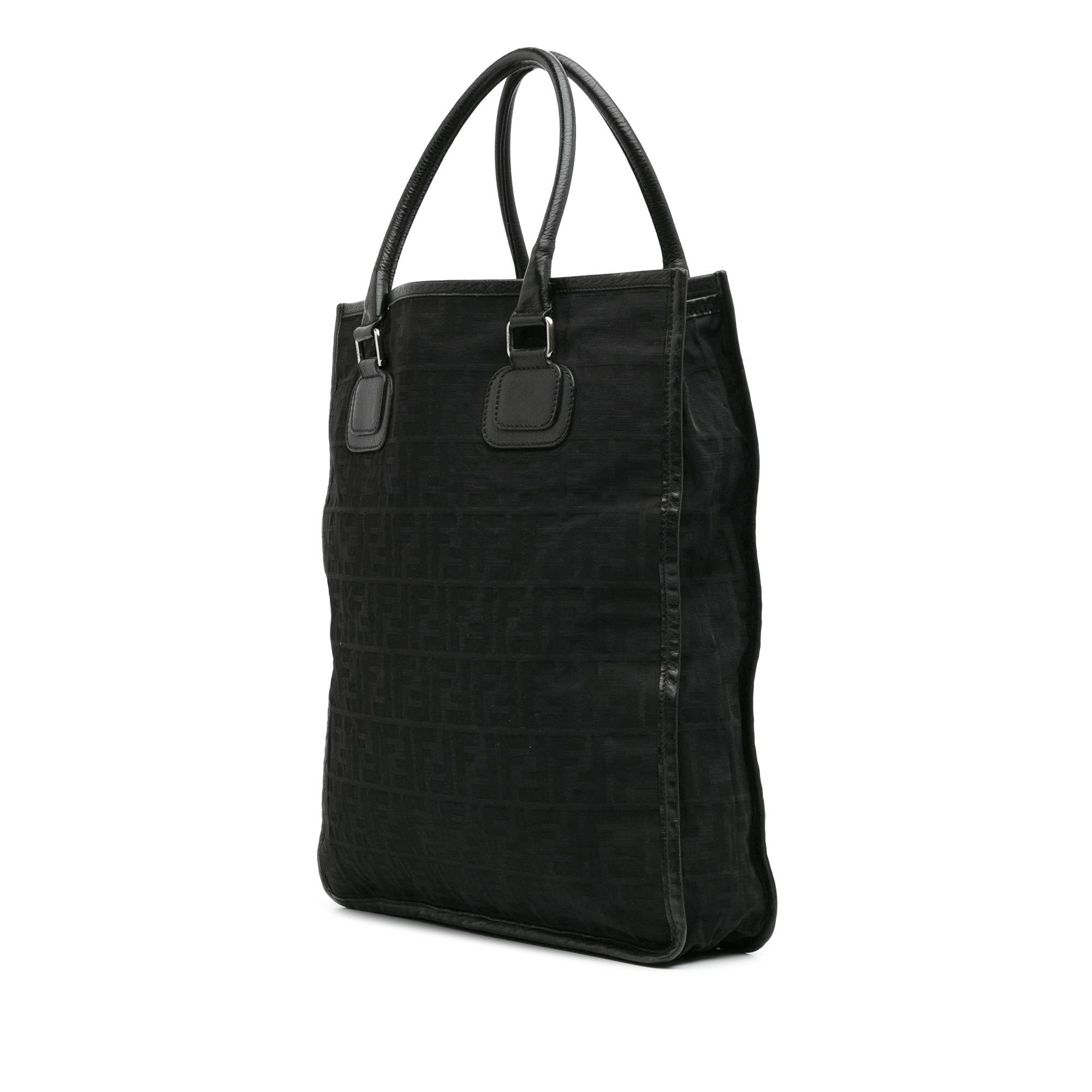 This tote features a canvas body with leather trim, rolled leather handles, an open top, an exterior slip pocket, and interior zip and slip pockets. Retail Price: 1000.00