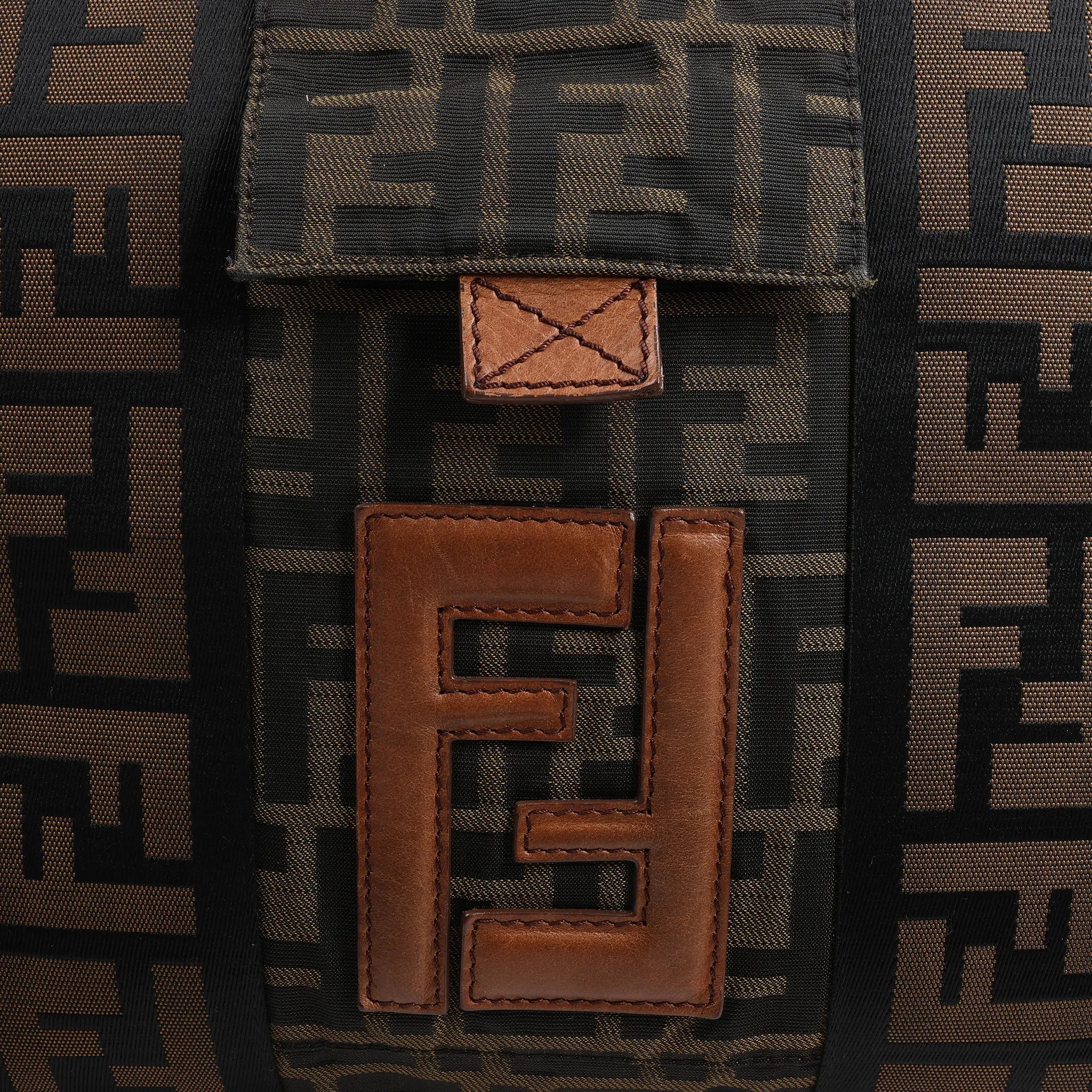 The FENDI Zucca Canvas x Leather 2Way Handbag in Brown (7VA158) delivers bold designer style with versatile carry options. Crafted from signature FF Zucca monogram canvas and leather trim, this structured bag features dual handles, a detachable strap, and eye-catching logo detailing.