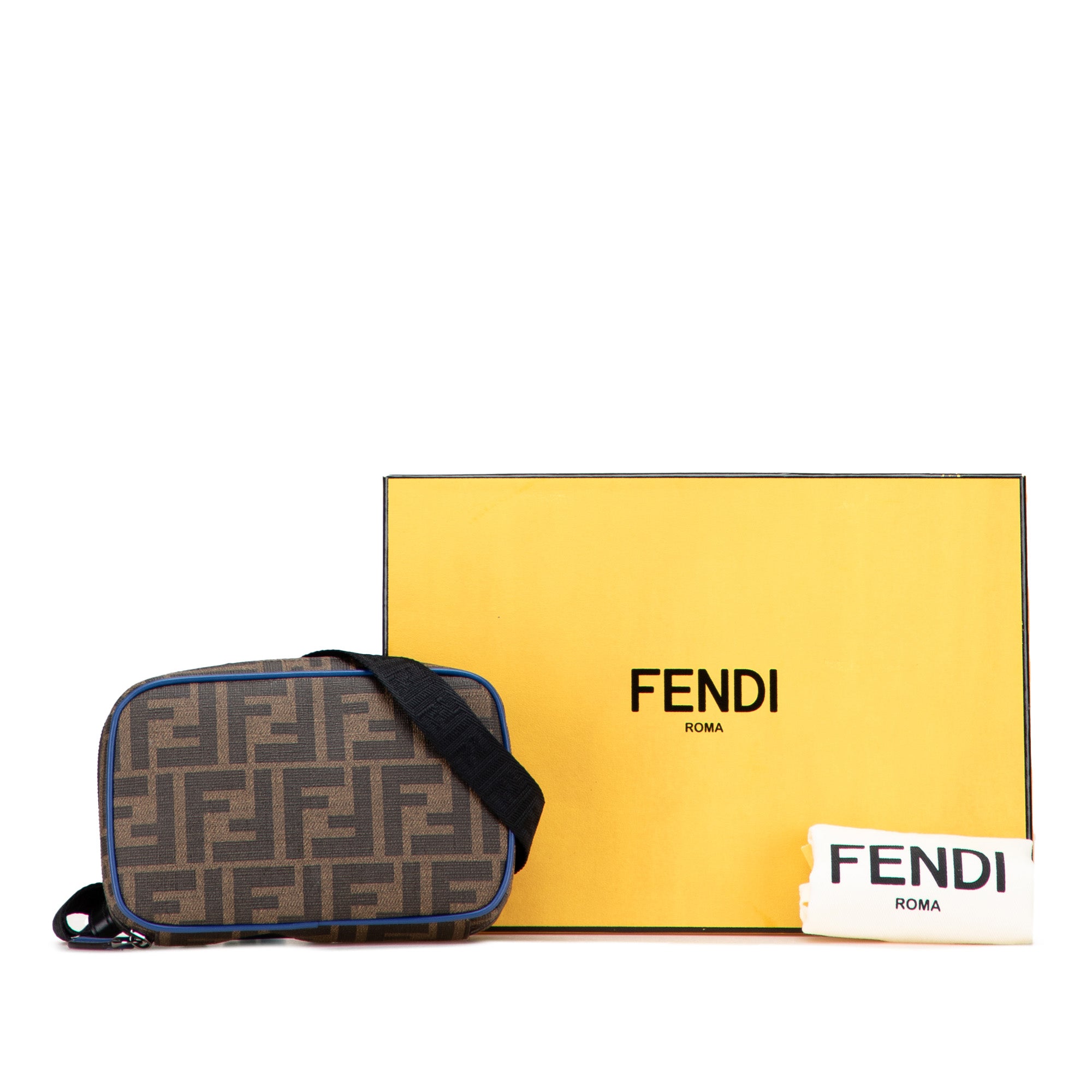 This crossbody features a coated canvas body with leather trim, a detachable flat strap, and a zip around closure. Inclusion: Dust bag, box. Retail Price: 1000.00