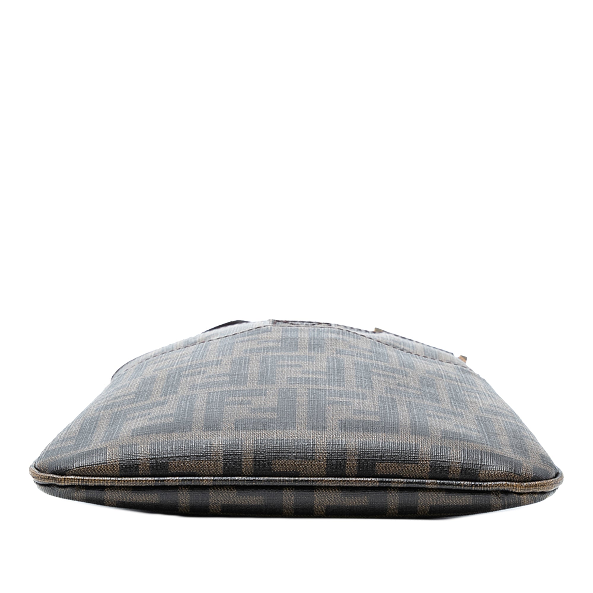 This crossbody bag features a coated canvas body, an adjustable flat shoulder strap, a top zip closure, an exterior slip pocket, and interior slip pockets. Retail Price: 890.00