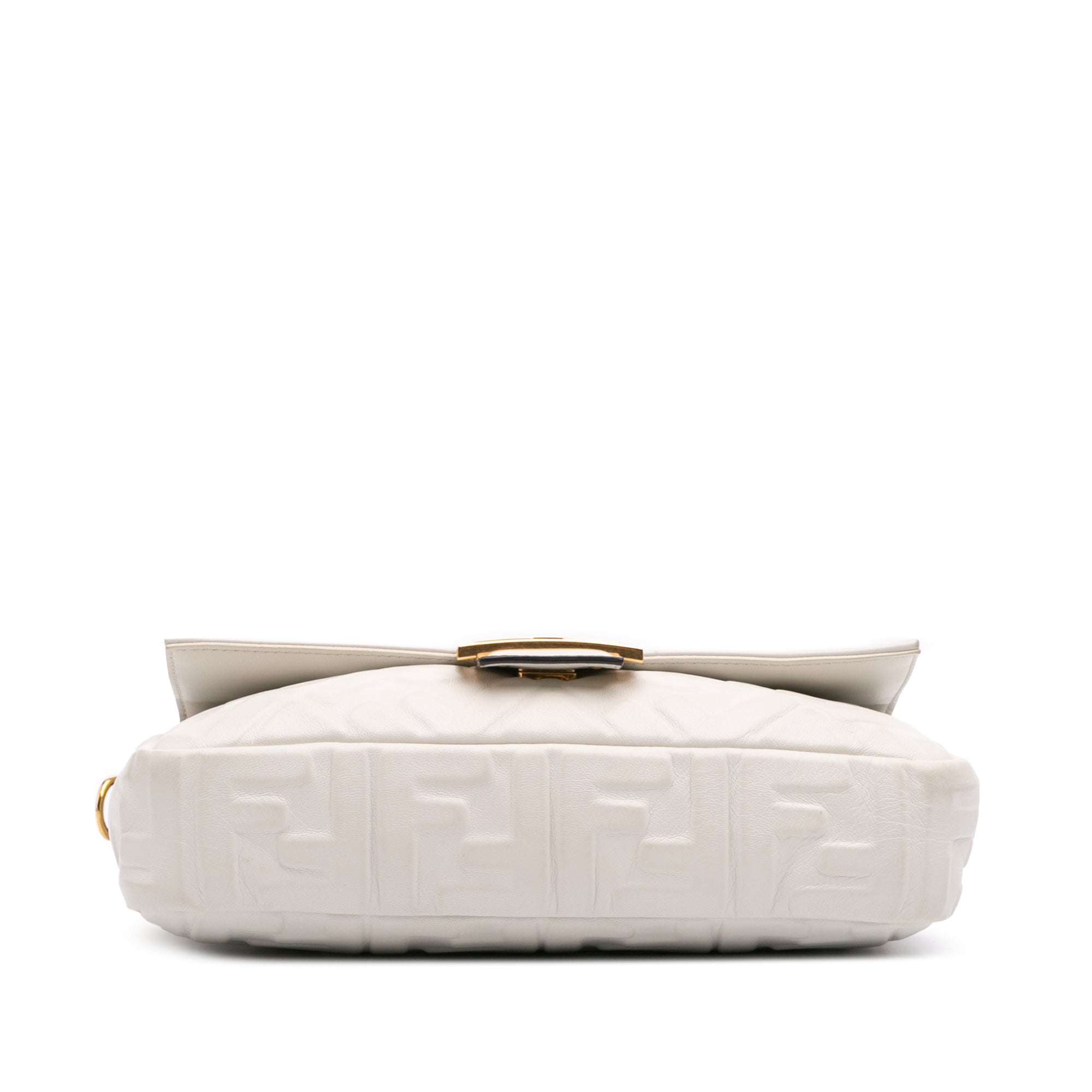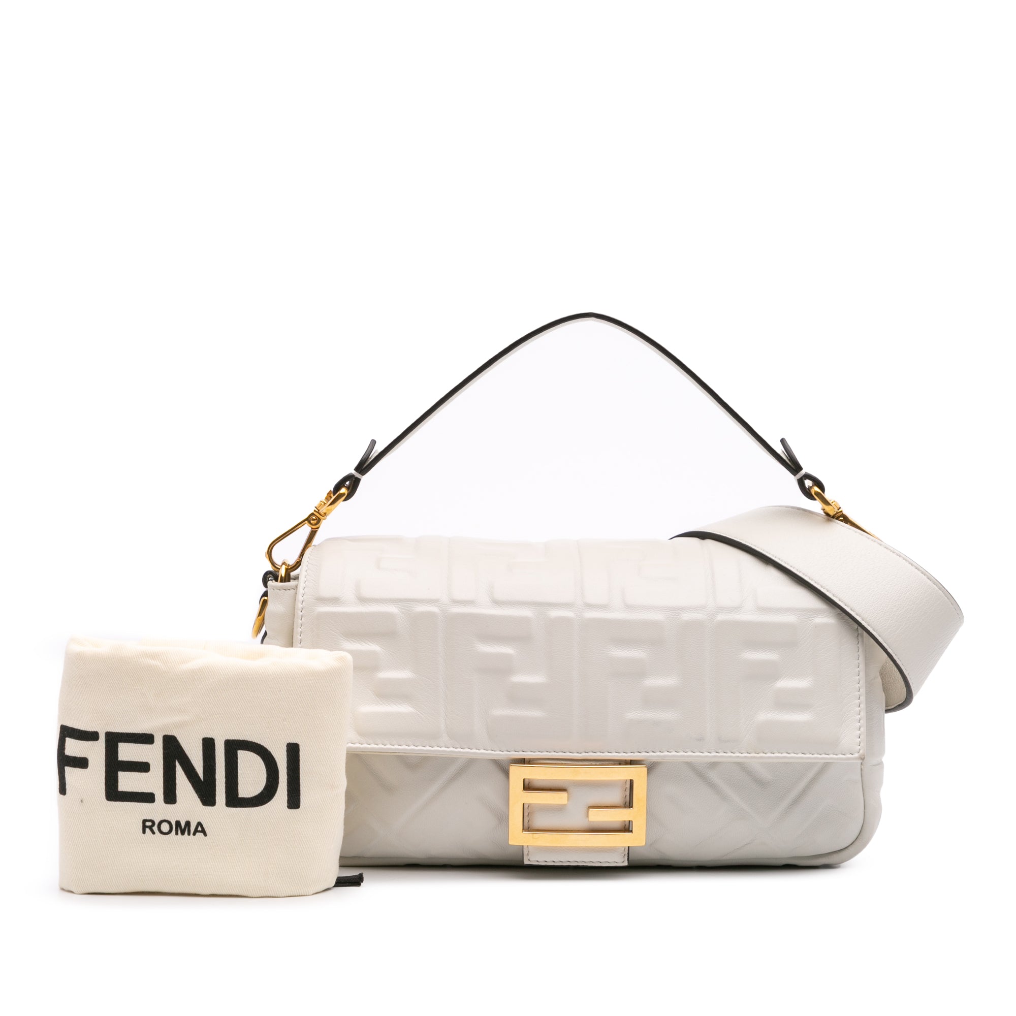 This satchel features an embossed leather body, a flat leather handle, a detachable flat leather strap, a front flap with magnetic snap closure, and an interior zip pocket. Inclusion: Dust bag. Retail Price: 3150.00